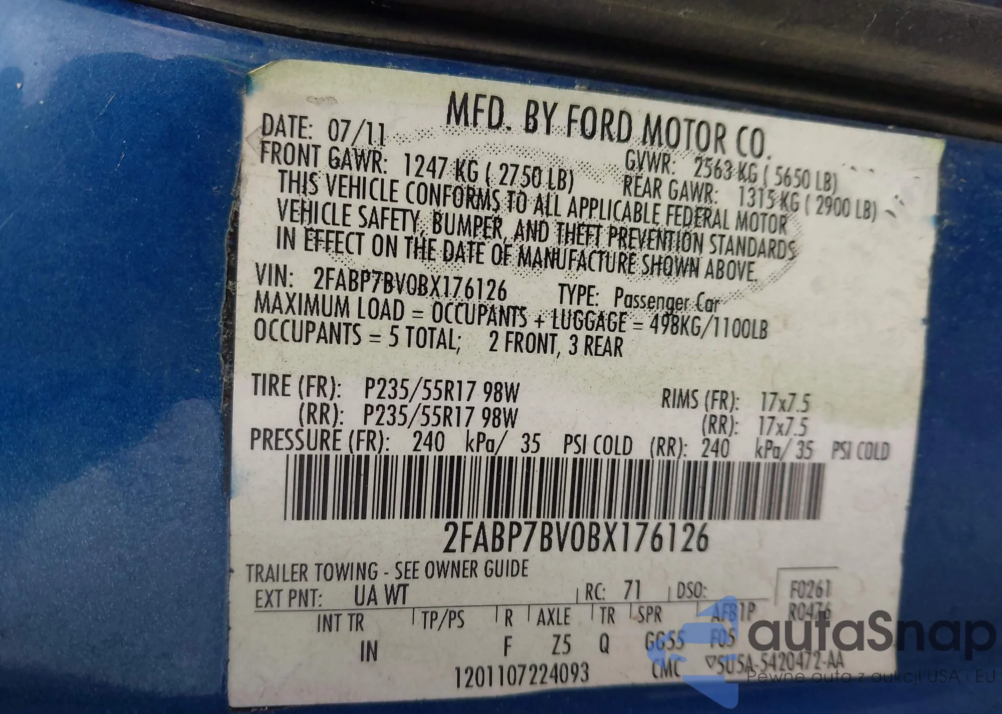 Автомобиль Ford Crown Victoria 2011 (VIN 2FABP7BVOBX176126) продаётся непроверенным продавцом. Рекомендуем проверить отчет Carfax и подтвердить возможность регистрации перед покупкой.