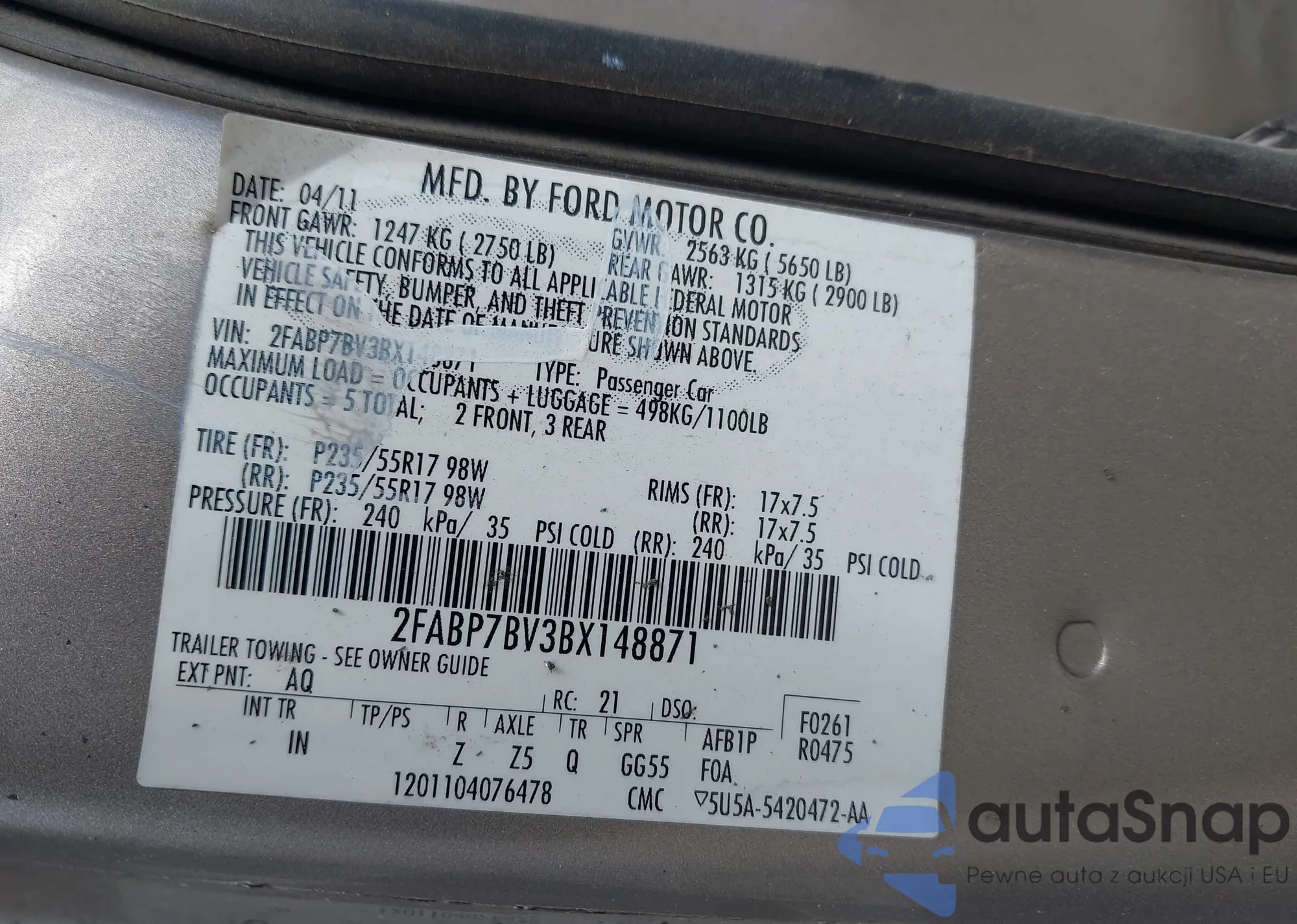 VIN: 2FABP7BV3BX148871