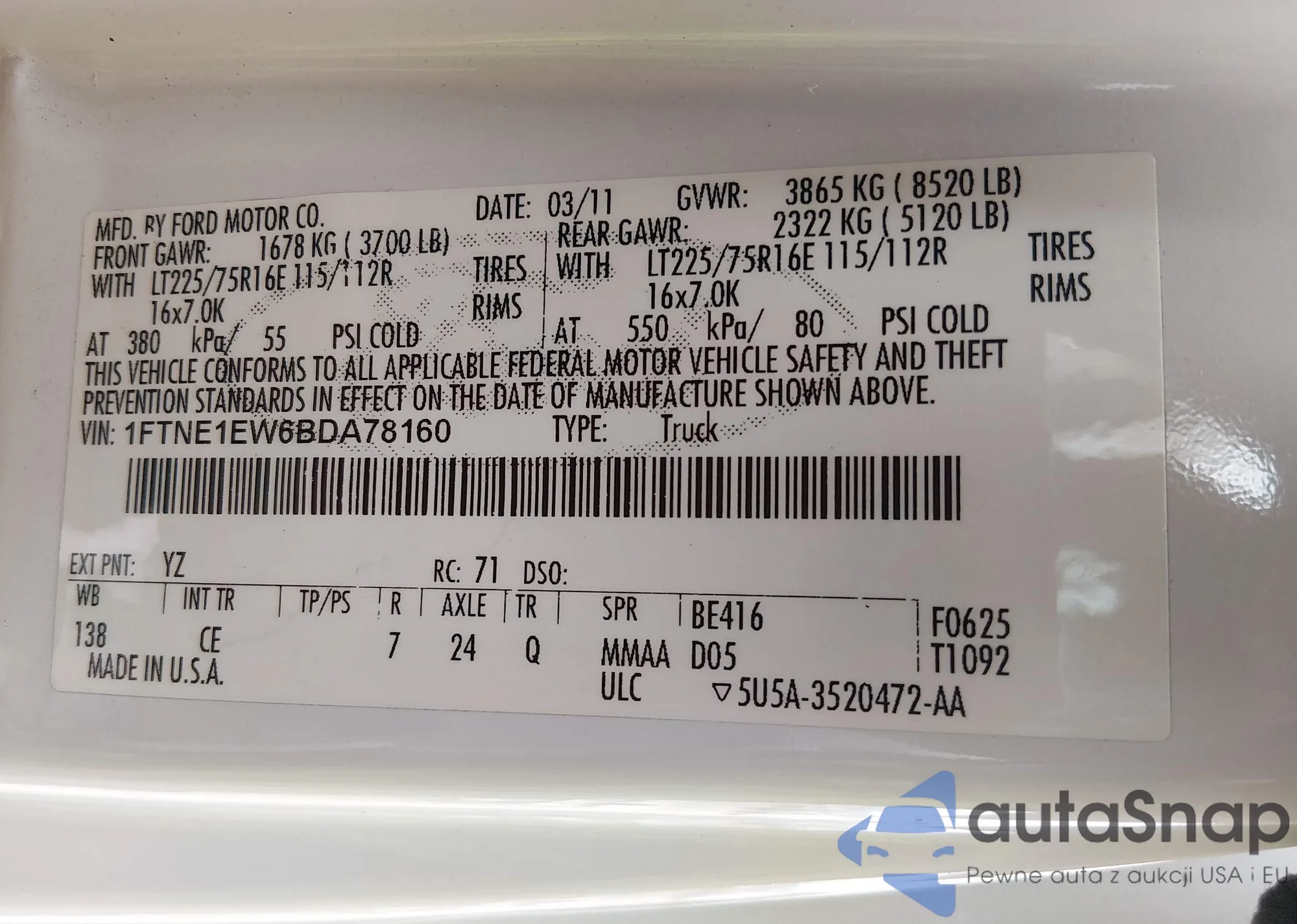 • VIN: 1FTNE1EW6BDA78160