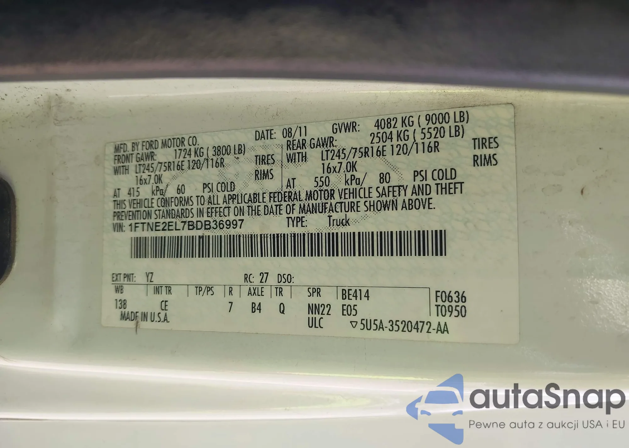 VIN: 1FTNE2EL7BDB36997