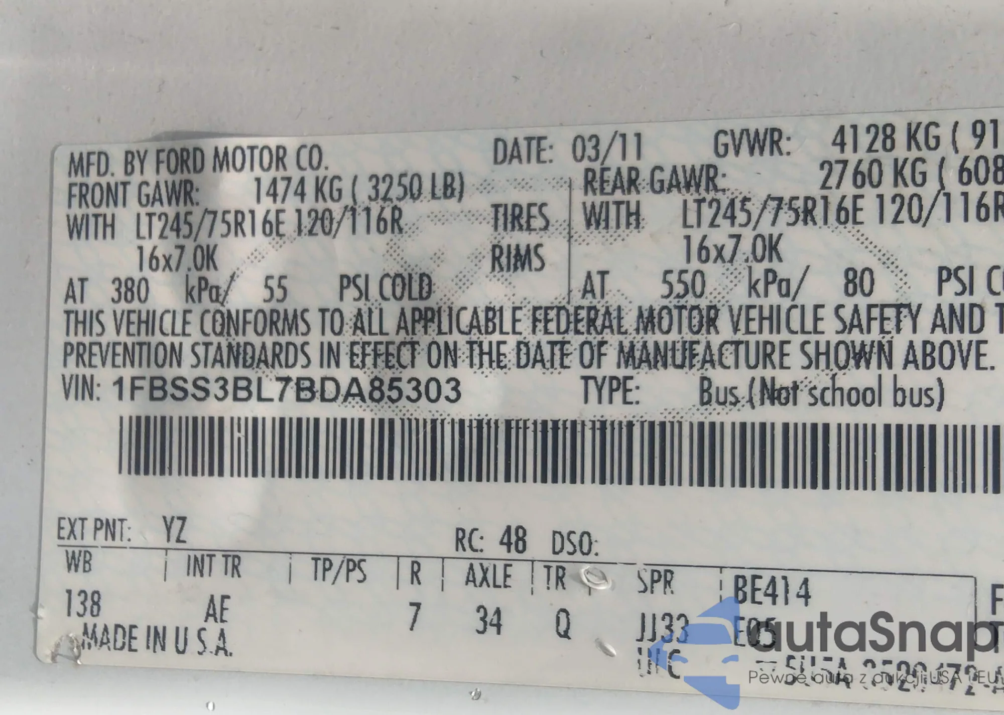 VIN: 1FBSS3BL7BDA85303
