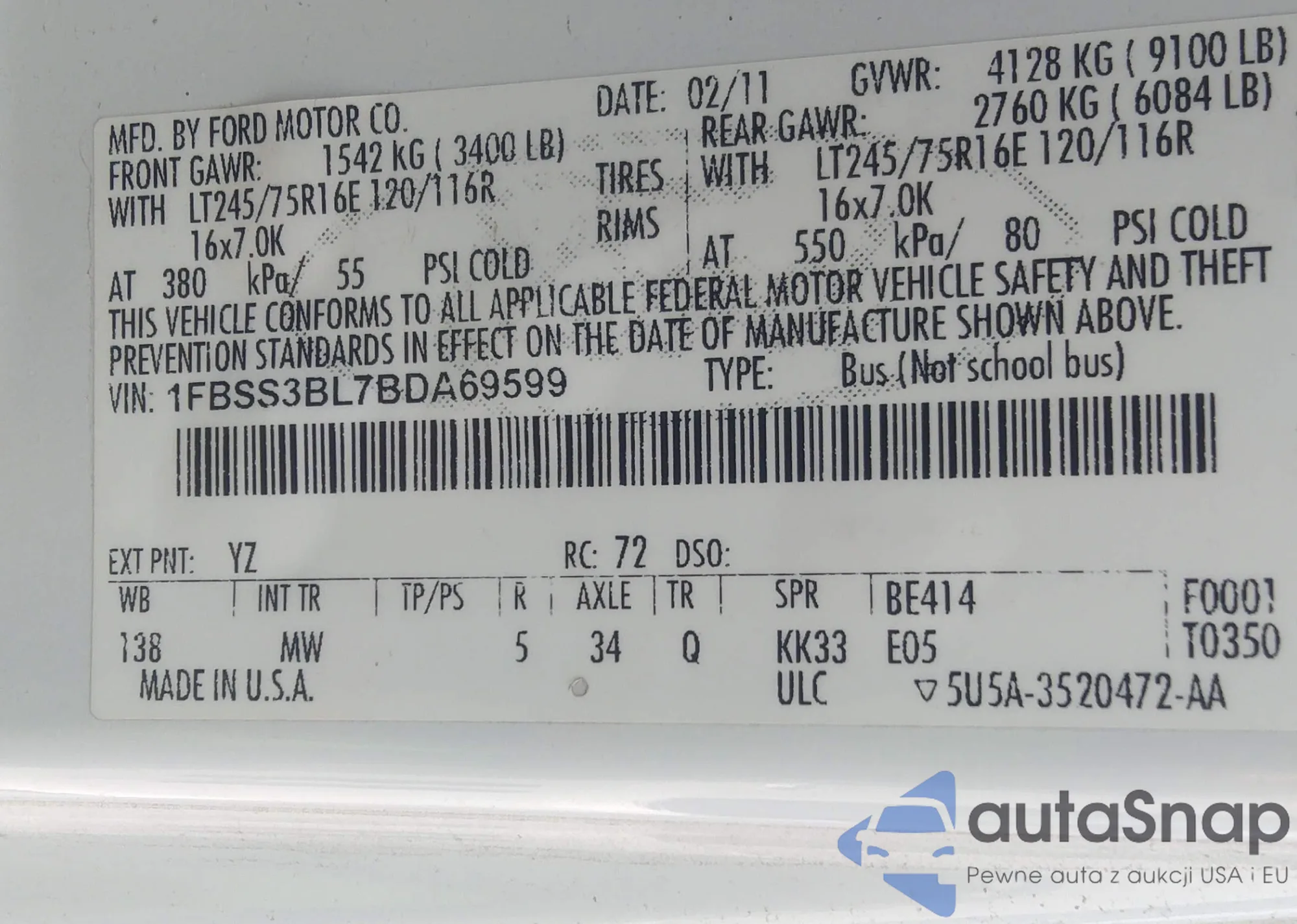 VIN: 1FBSS3BL7BDA69599