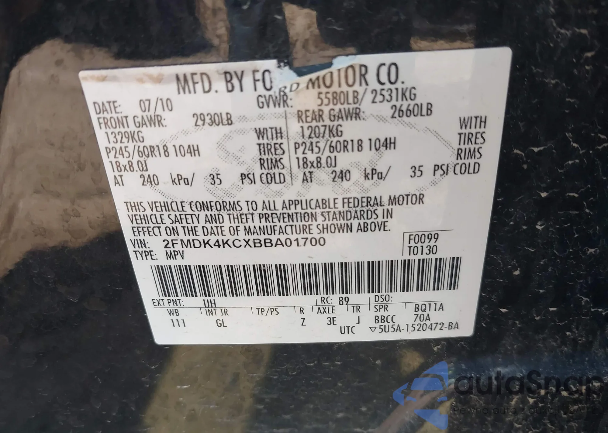 VIN: 2FMDK4KCXBBA01700