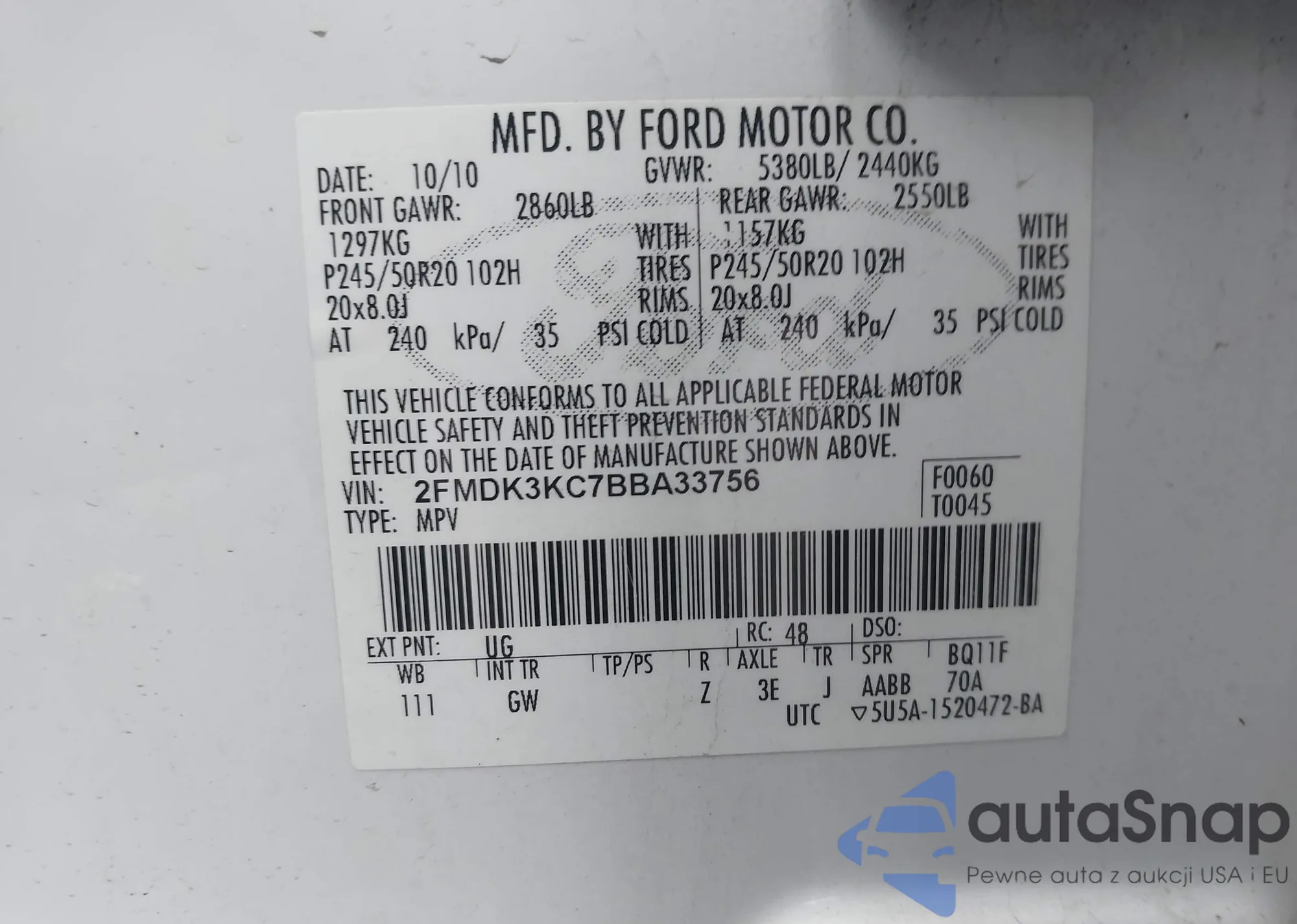 VIN: 2FMDK3KC7BBA33756