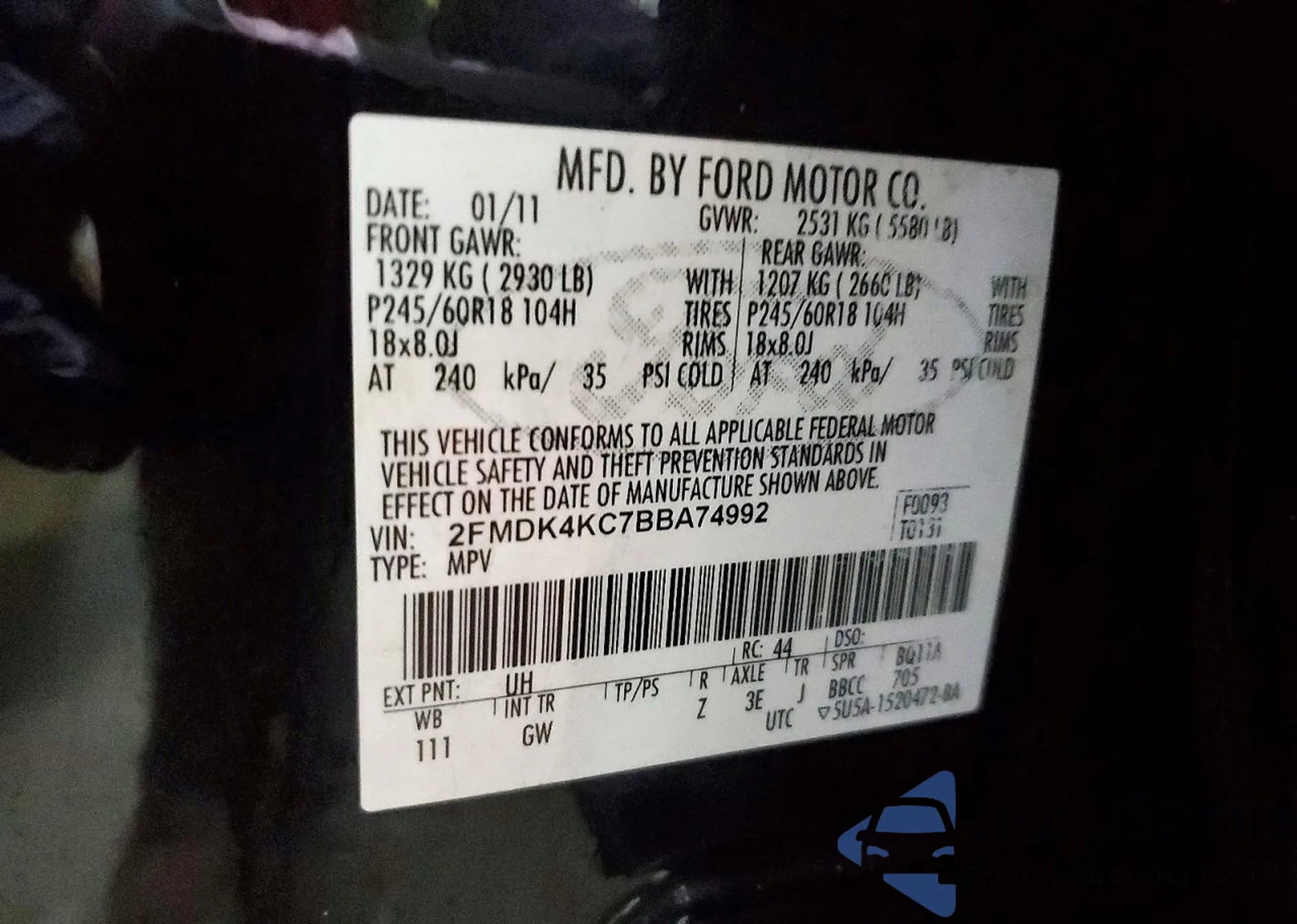 VIN: 2FMDK4KC7BBA74992