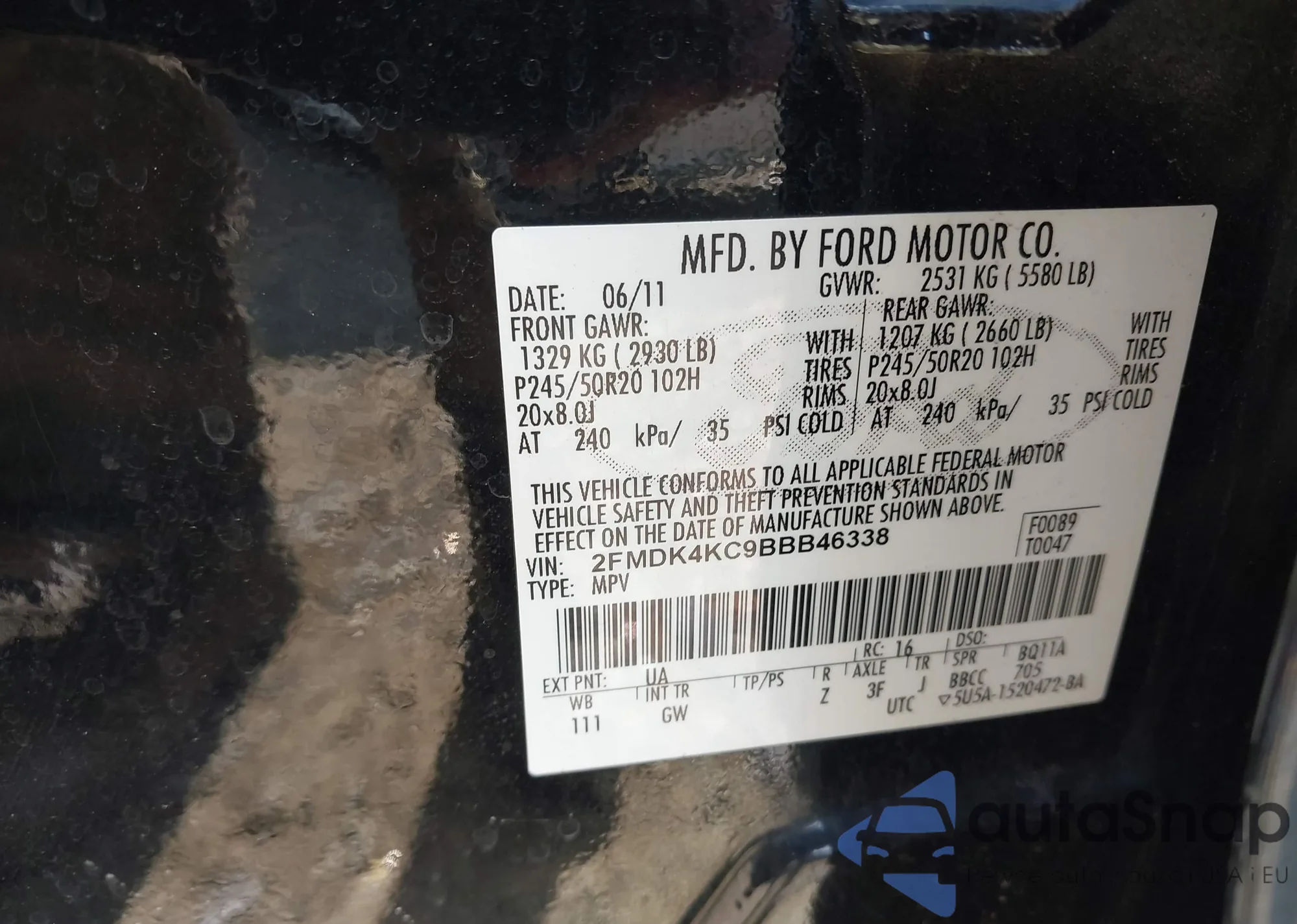VIN: 2FMDK4KC9BBB46338