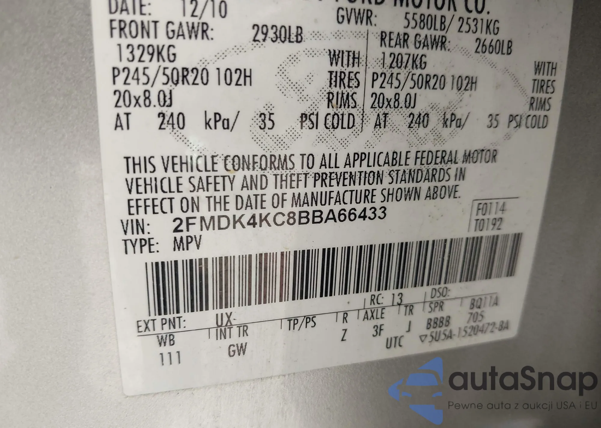 VIN: 2FMDK4KC8BBA66433
