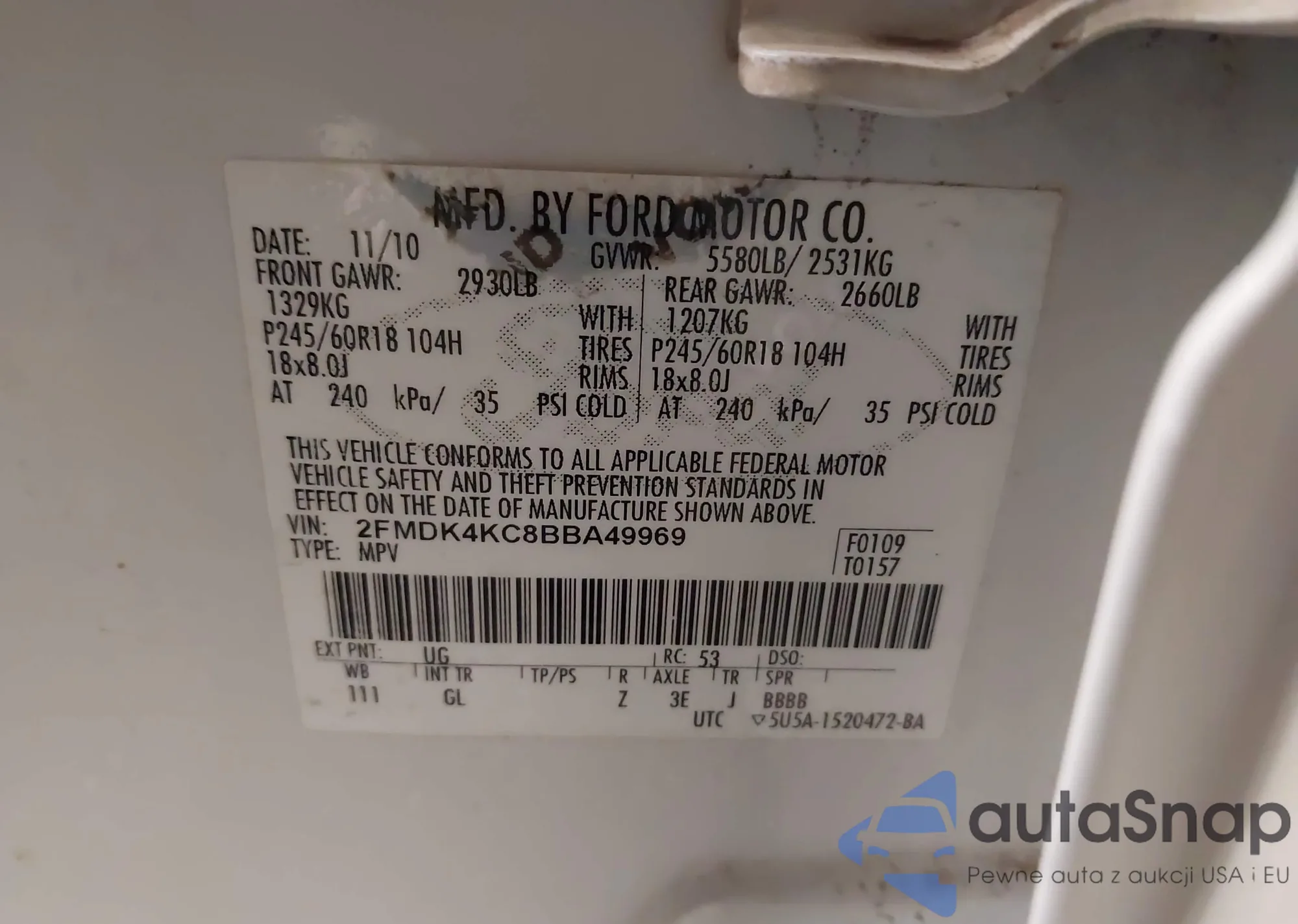 VIN: 2FMDK4KC8BBA49969