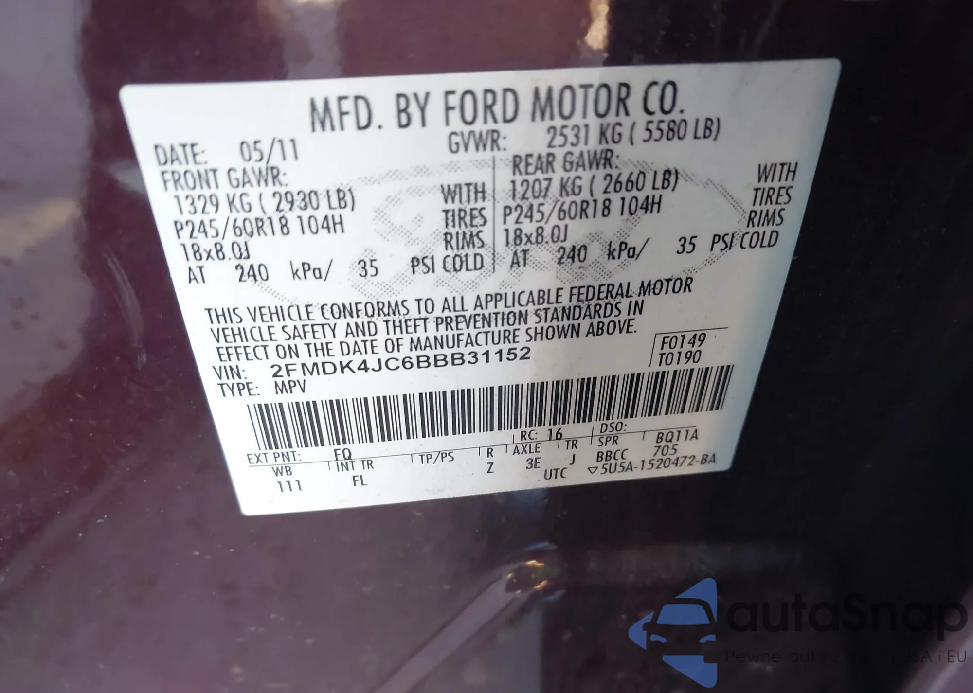 VIN: 2FMDK4JC6BBB31152