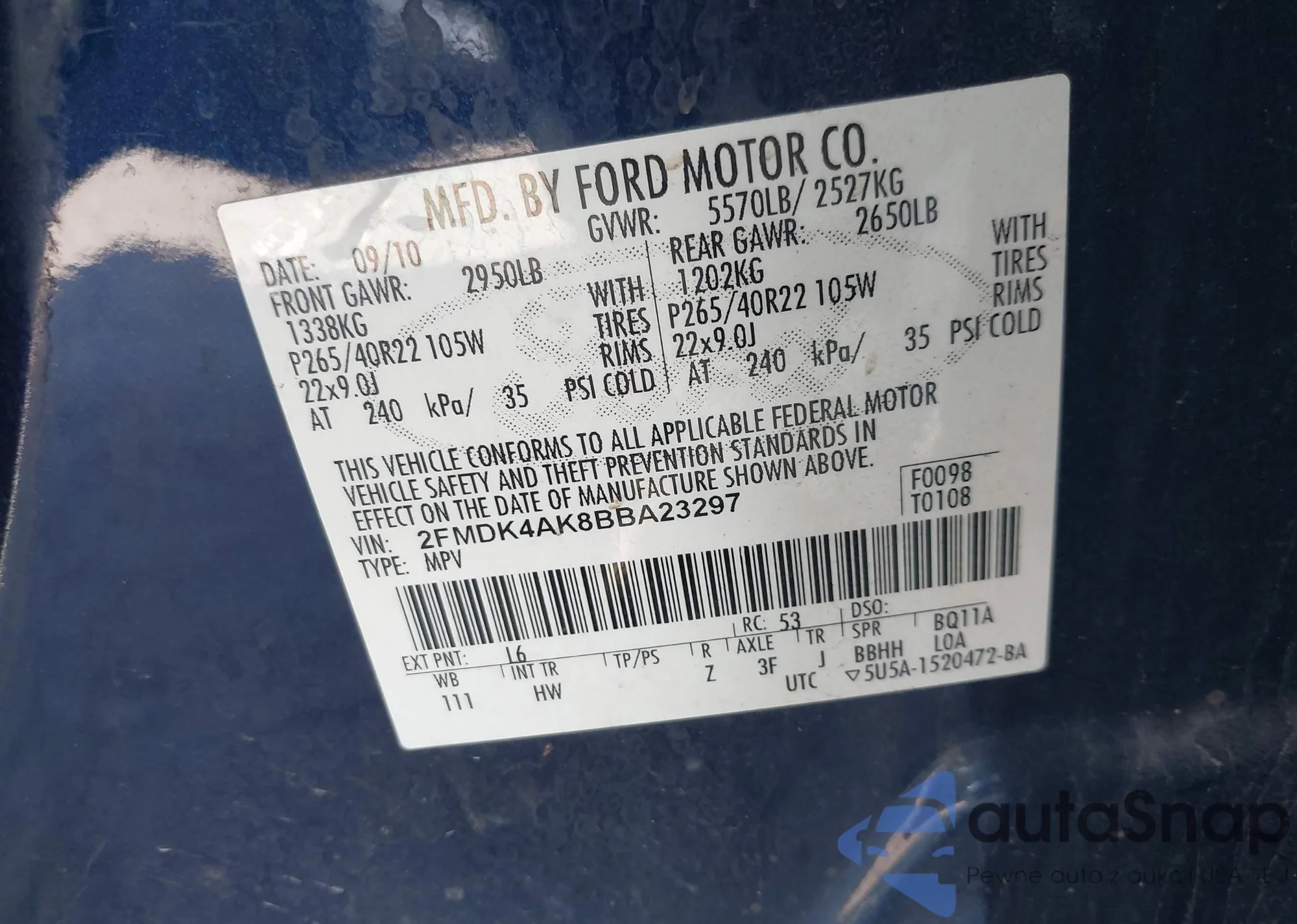 VIN: 2FMDK4AK8BBA23297