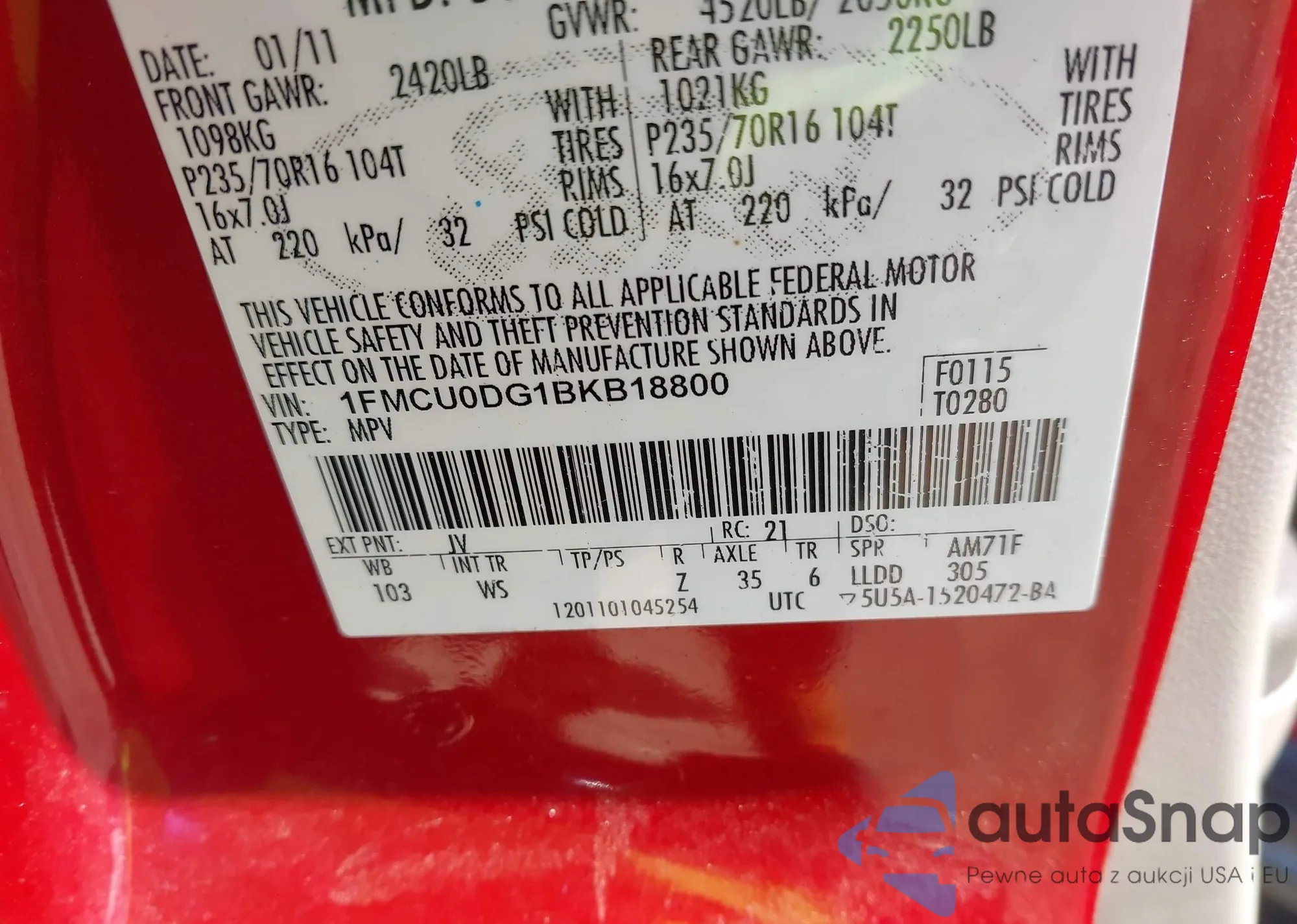 VIN: 1FMCU0DG1BKB18800
