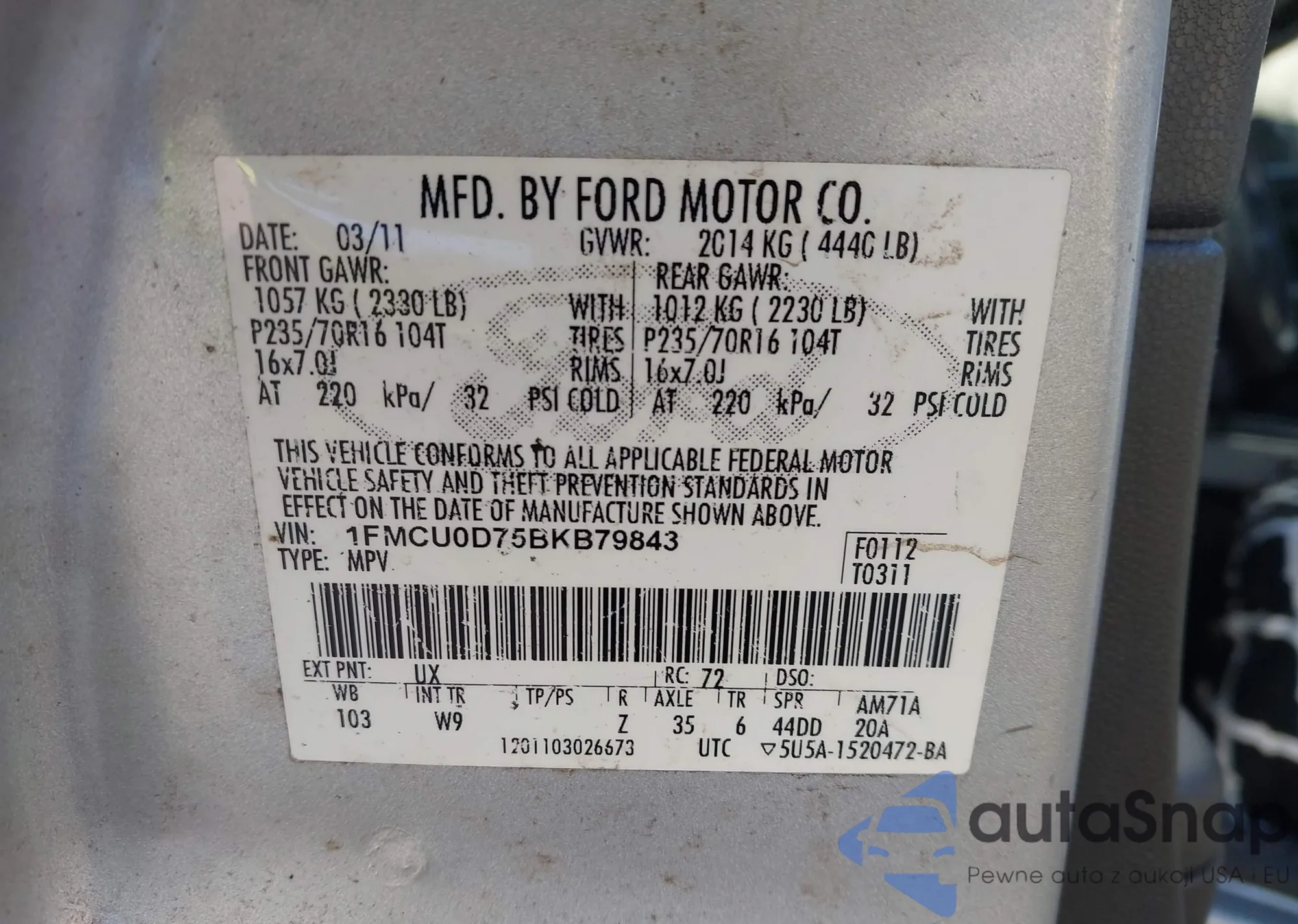 VIN: 1FMCU0D75BKB79843