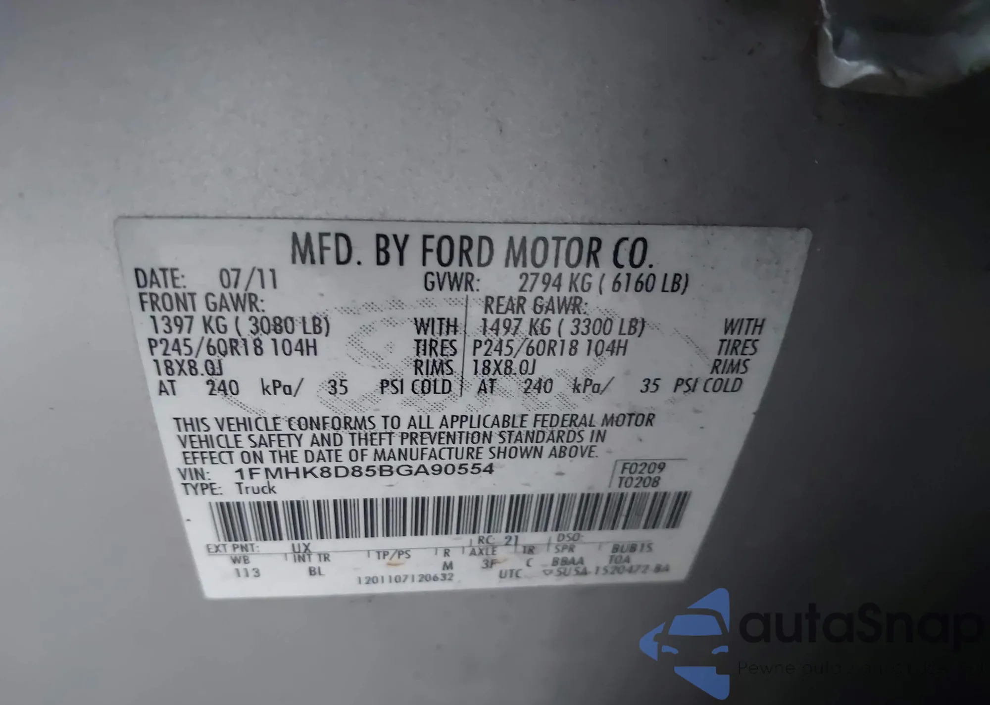 VIN: 1FMHK8D85BGA90554