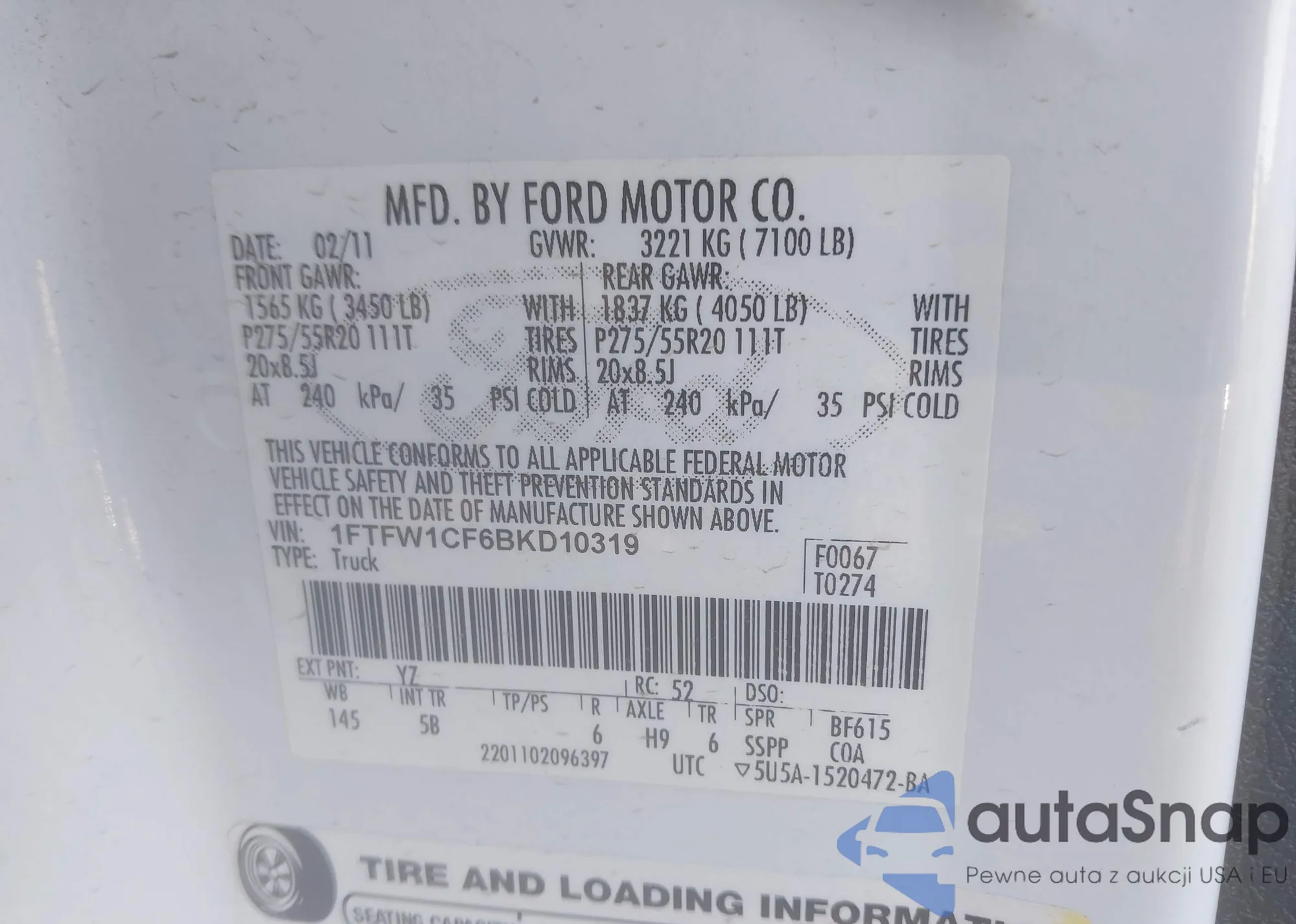 VIN: 1FTFW1CF6BKD10319