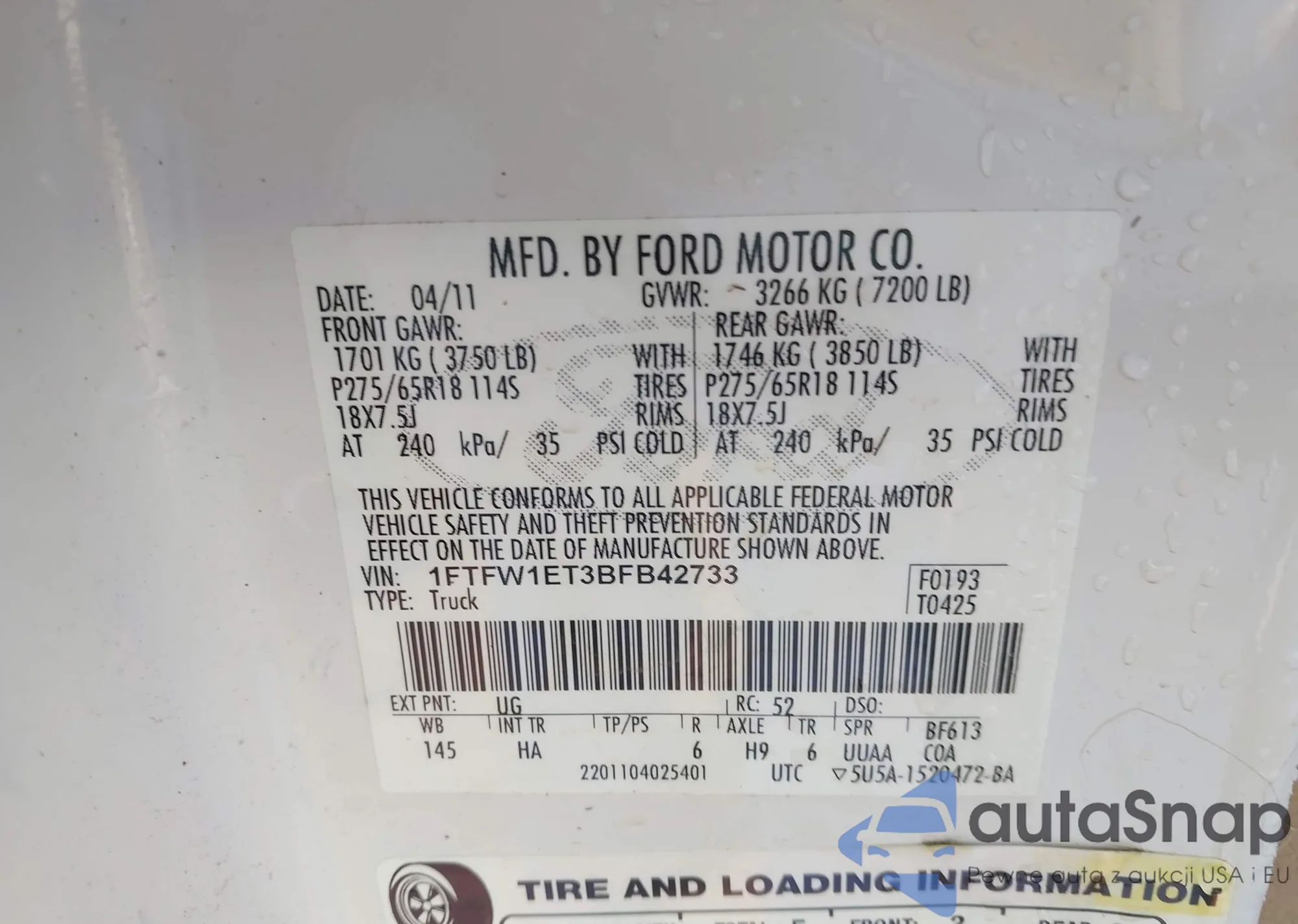 VIN: 1FTFW1ET3BFB42733