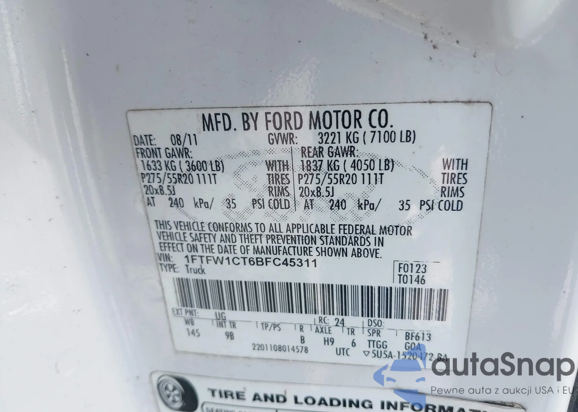 VIN: 1FTFW1CT6BFC45311