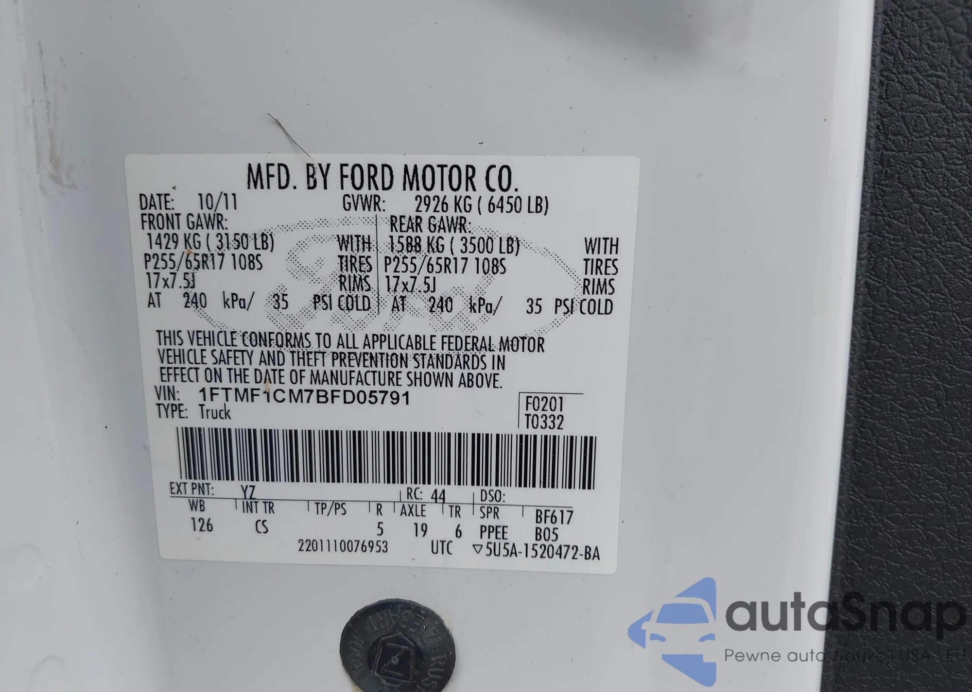 VIN: 1FTMF1CM7BFD05791