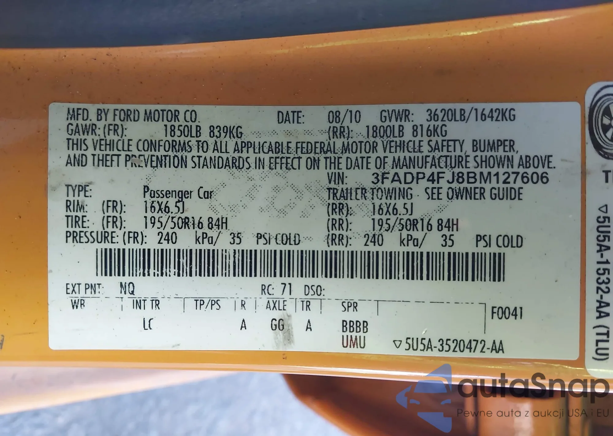 VIN: 3FADP4FJ8BM127606