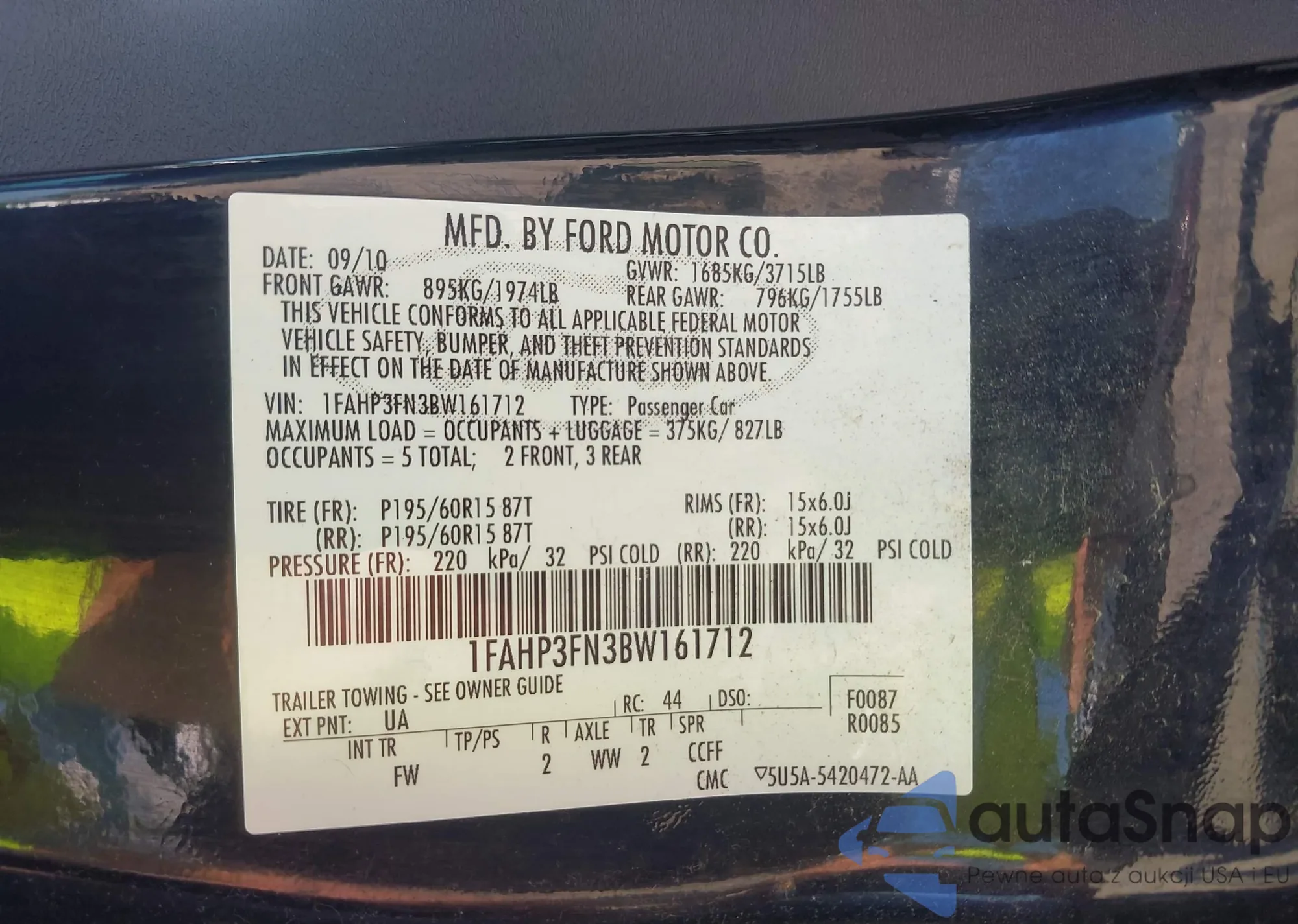 VIN: 1FAHP3FN3BW161712