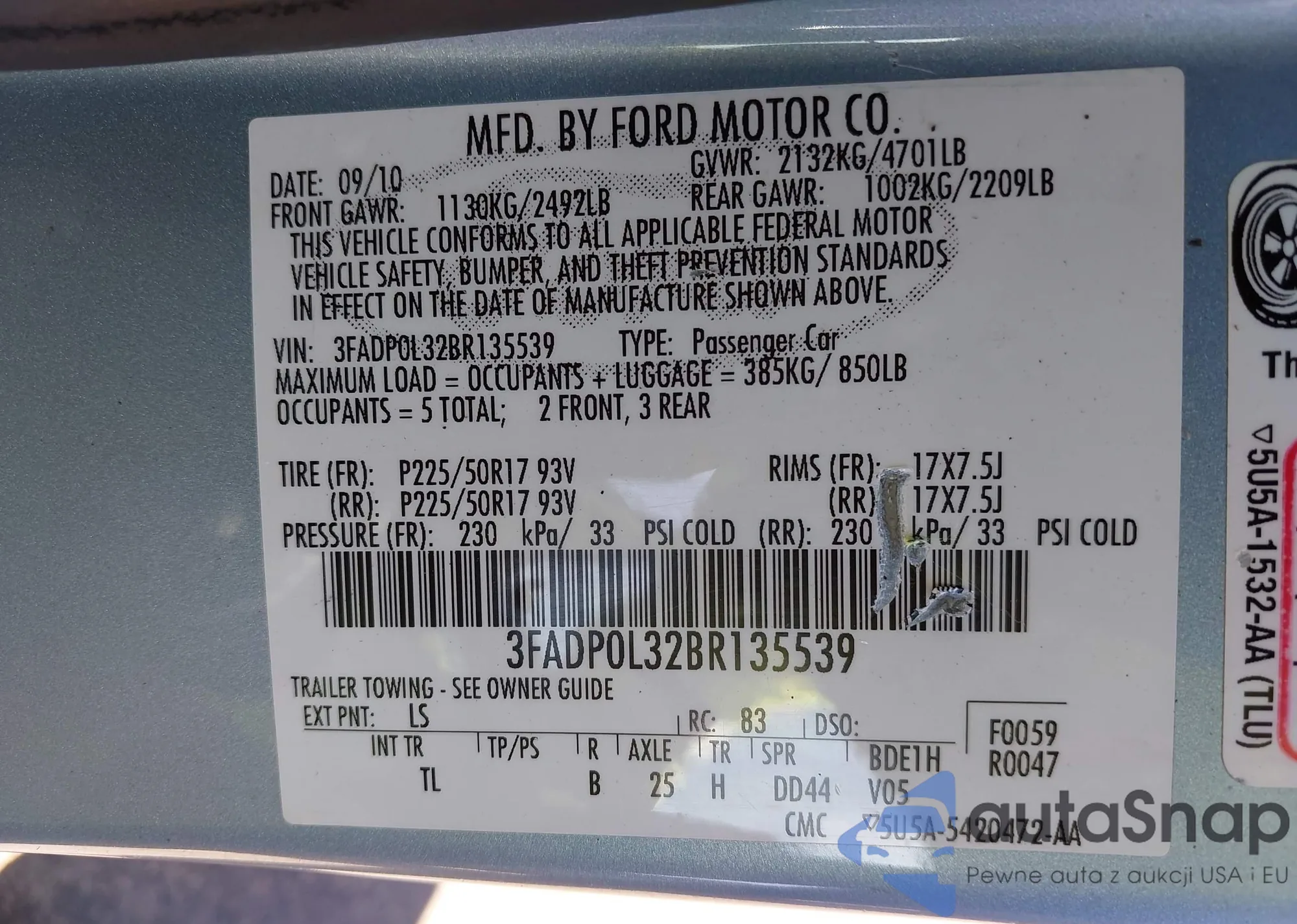 VIN: 3FADP0L32BR135539