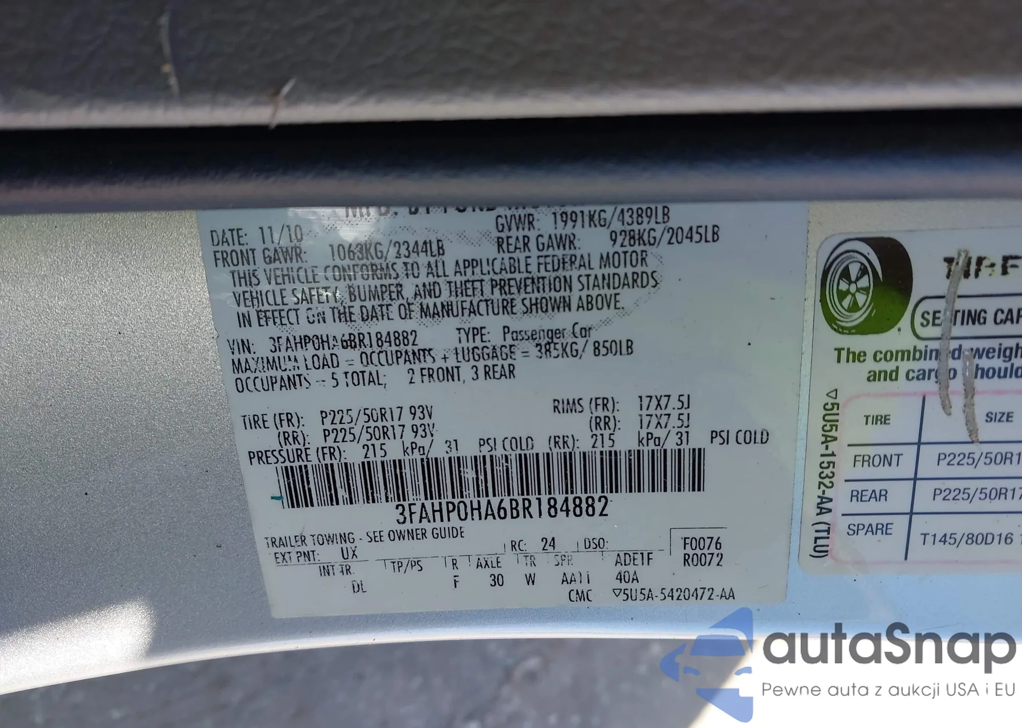 Автомобиль Ford Fusion 2011 (VIN 3FAHP0HA6BR184882) ранее не участвовал в торгах. Документы чистые, пробег соответствует или ниже среднего по рынку. Продаётся страховой компанией — рекомендуем покупку. Доставка в порт займет около 6–8 недель.