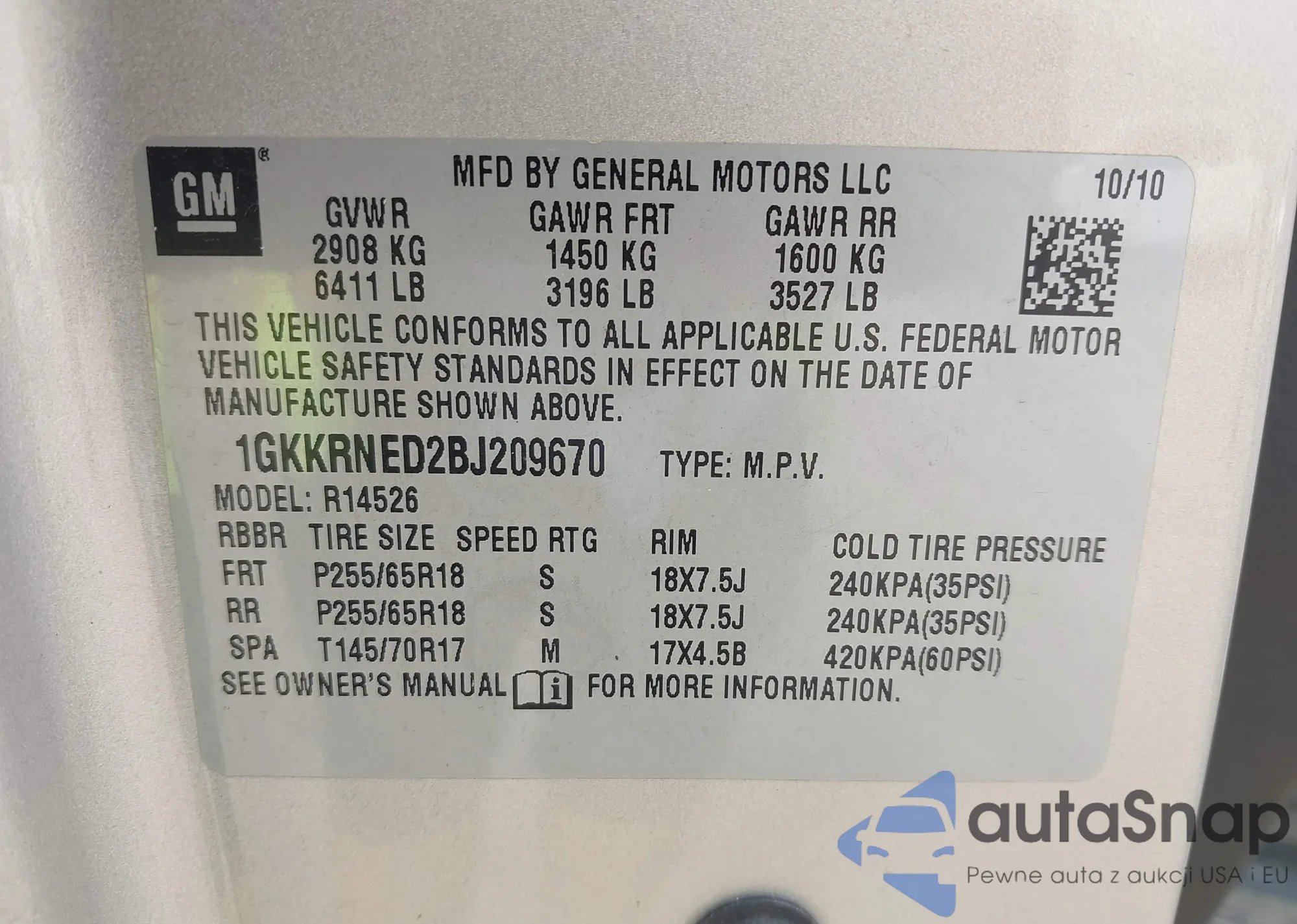 VIN: 1GKKRNED2BJ209670