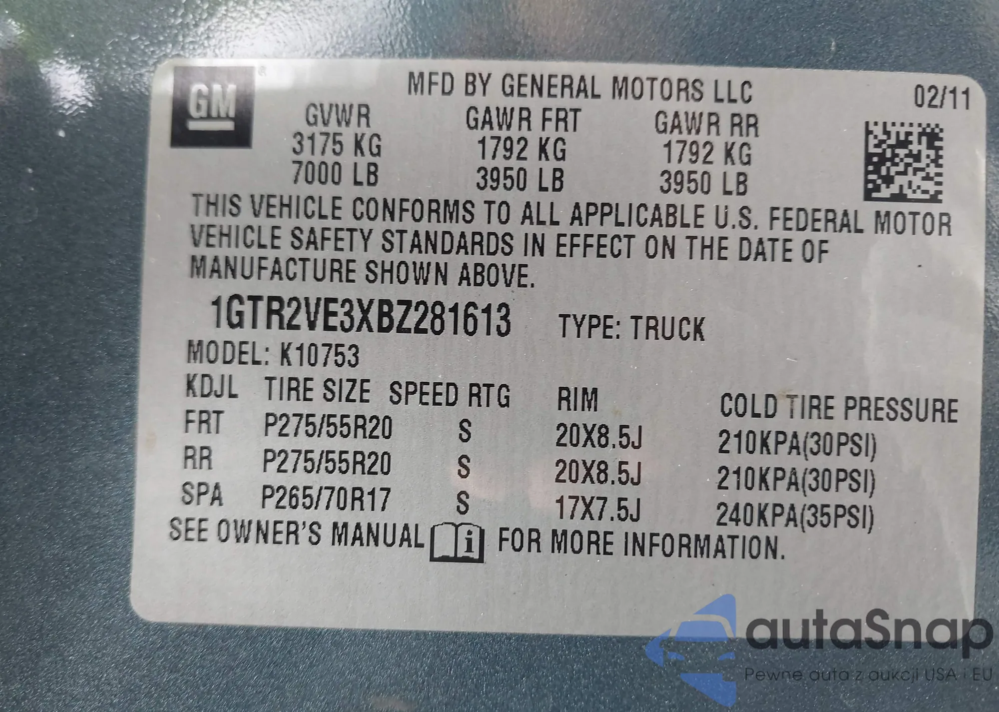 VIN: 1GTR2VE3XBZ281613