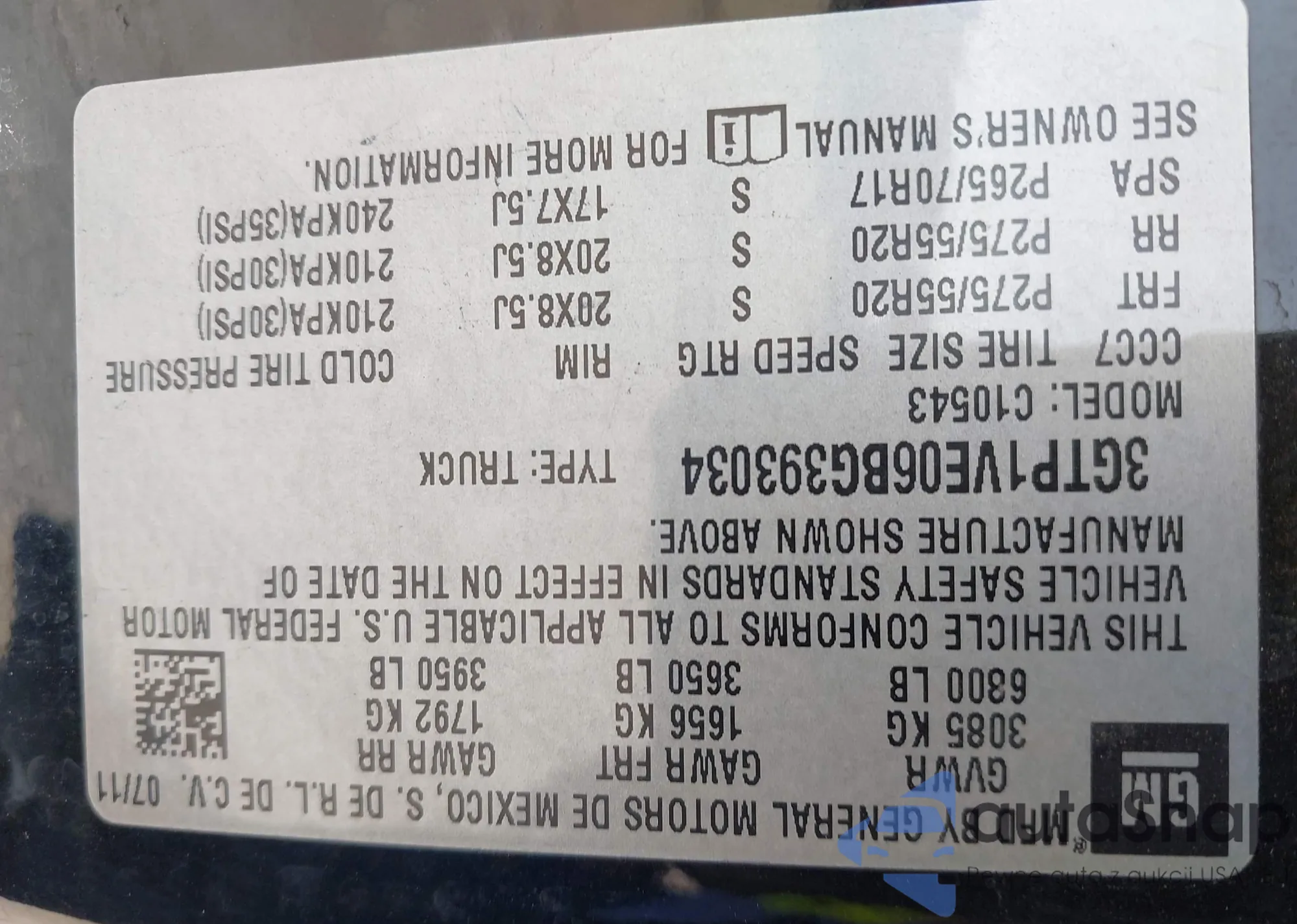 VIN: 3GTP1VE06BG393034