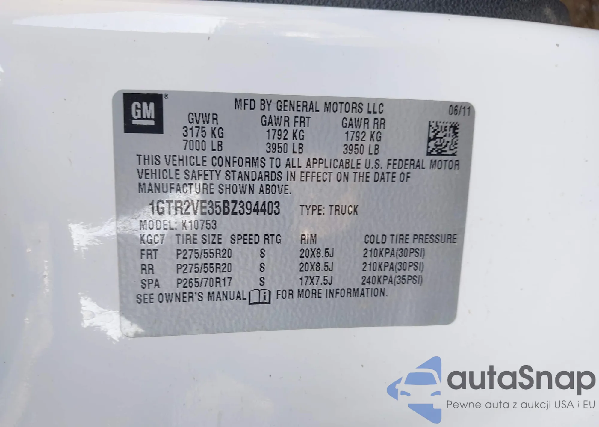 • VIN: 1GTR2VE35BZ394403