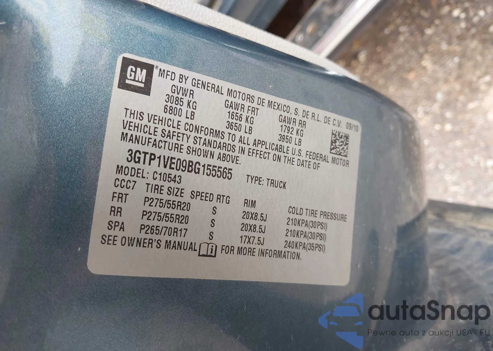 VIN: 3GTP1VE09BG155565