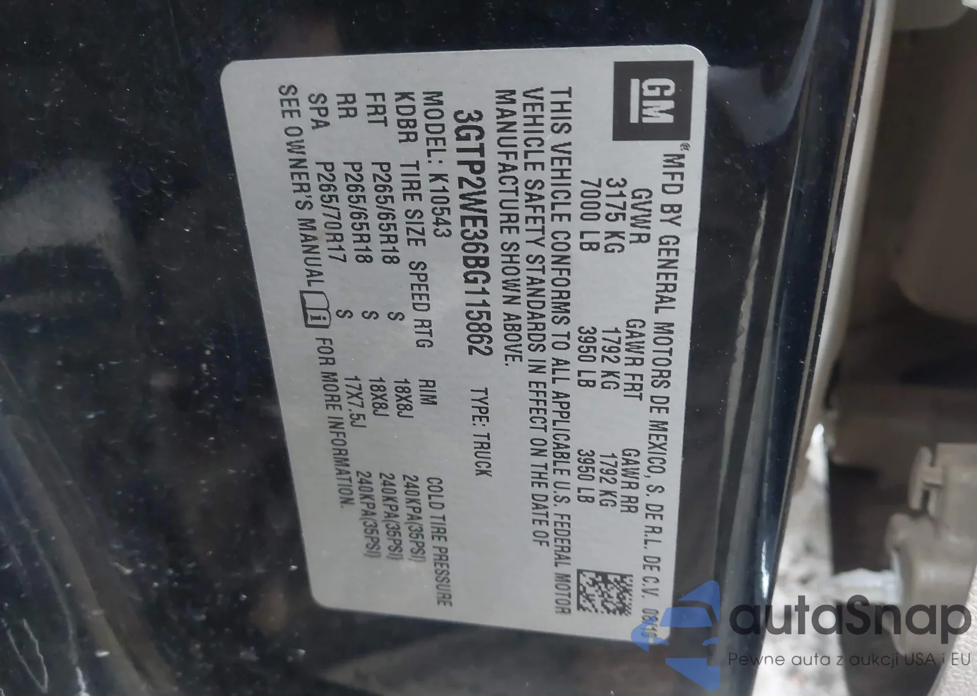 • VIN: 3GTP2WE36BG115862