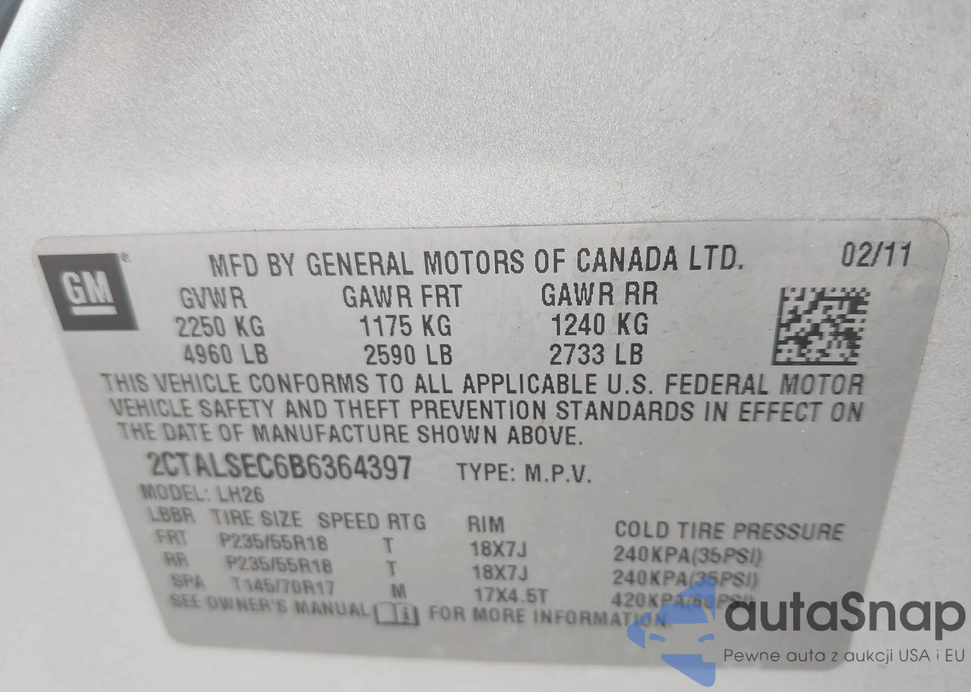 Автомобиль GMC Terrain 2011 (VIN 2CTALSEC6B6364397) ранее не участвовал в торгах. Документы чистые, пробег соответствует или ниже среднего по рынку. Продаётся страховой компанией — рекомендуем покупку. Доставка в порт займет около 6–8 недель.