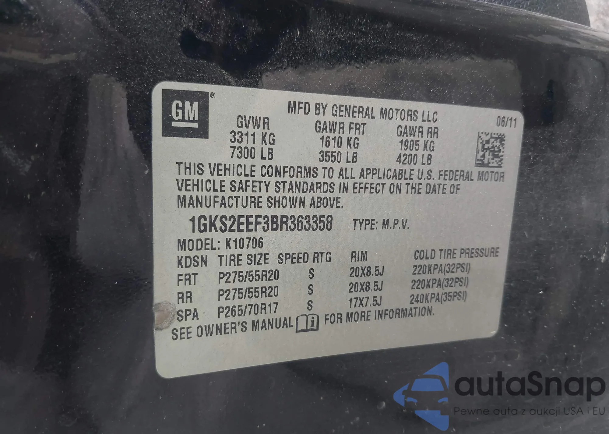 VIN: 1GKS2EEF3BR363358