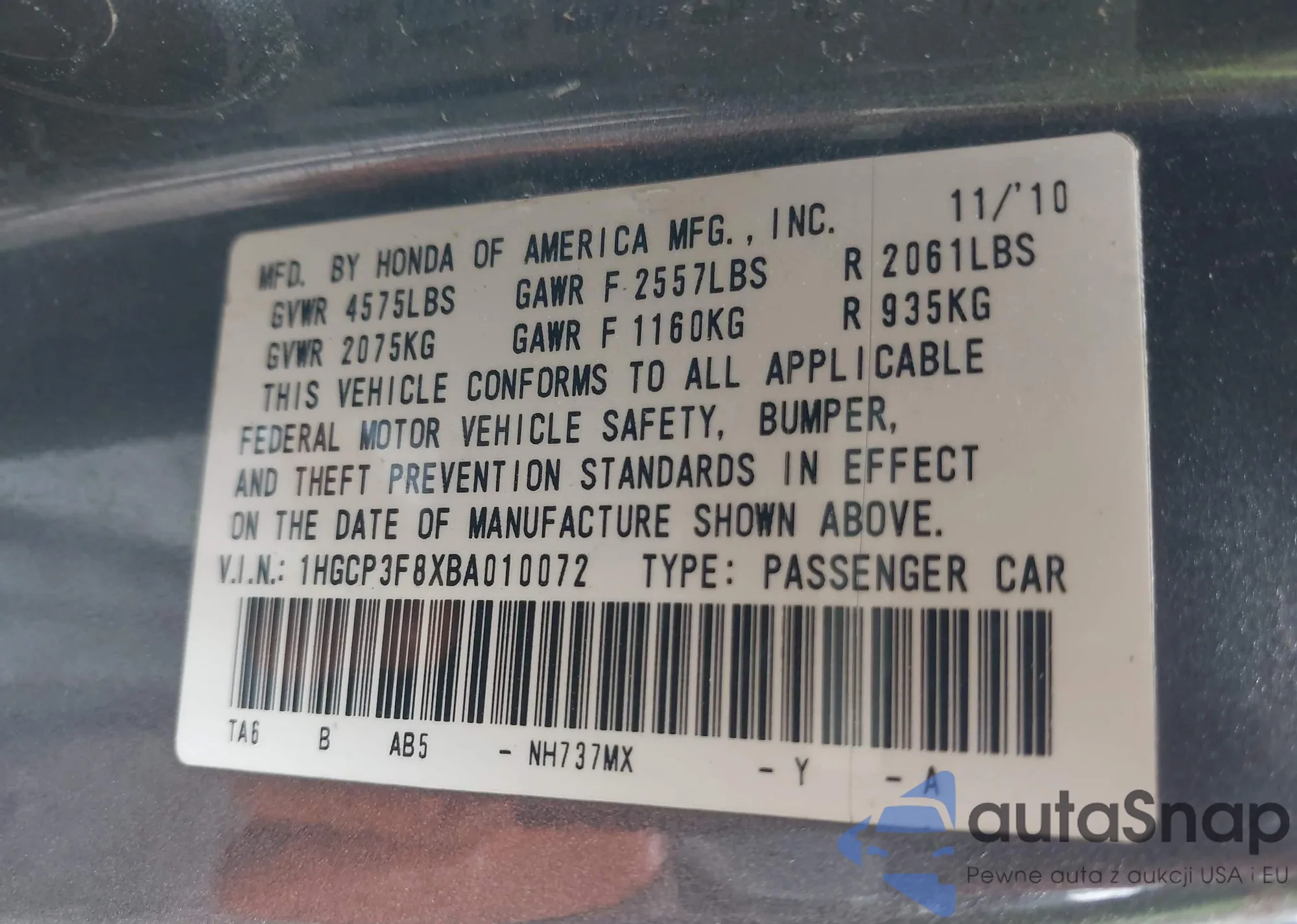 VIN: 1HGCP3F8XBA010072