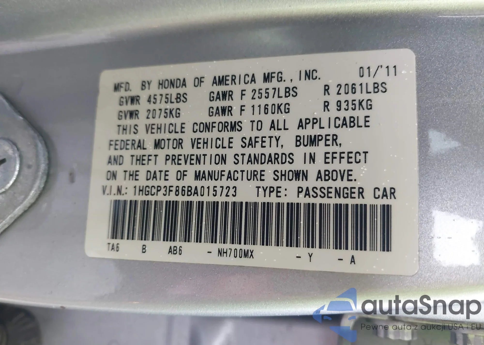 VIN: 1HGCP3F86BA015723