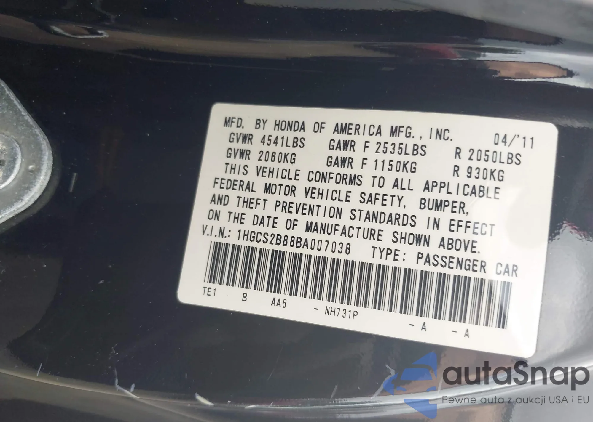 VIN: 1HGCS2B88BA007038
