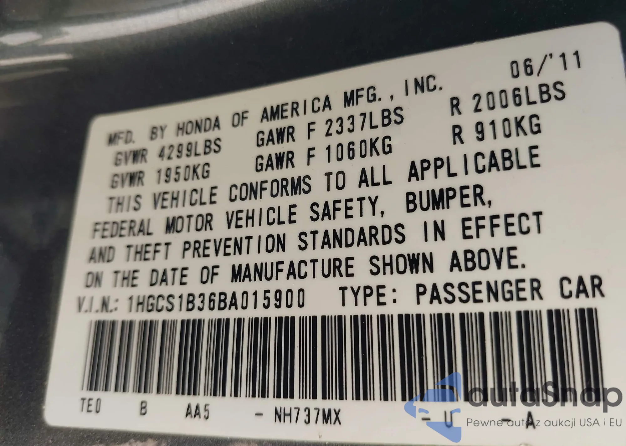 Автомобиль Honda Accord 2011 (VIN 1HGCS1B36BA015900) ранее не участвовал в торгах. Документы чистые, пробег соответствует или ниже среднего по рынку. Продаётся страховой компанией — рекомендуем покупку. Доставка в порт займет около 6–8 недель.