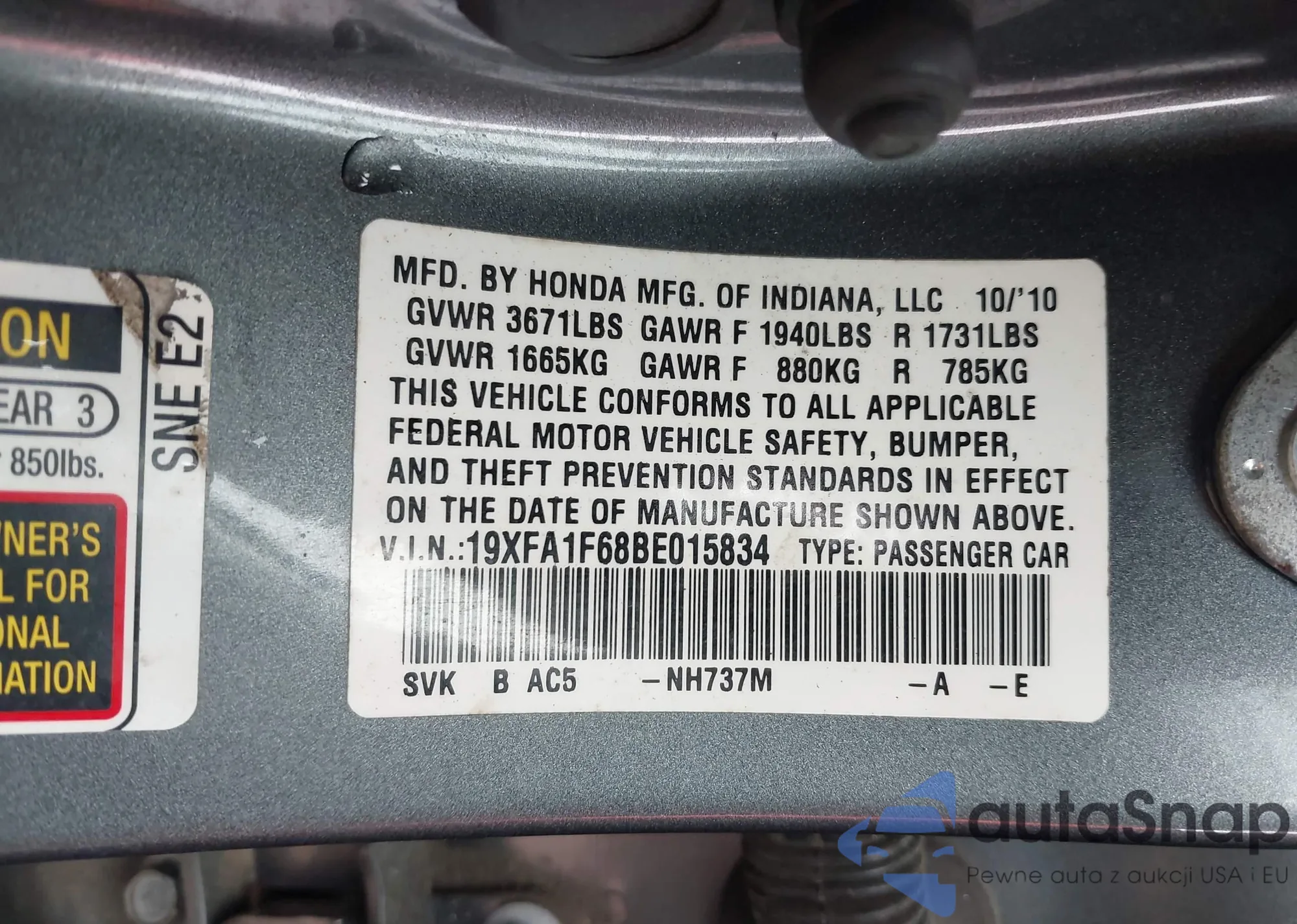 VIN: 19XFA1F68BE015834