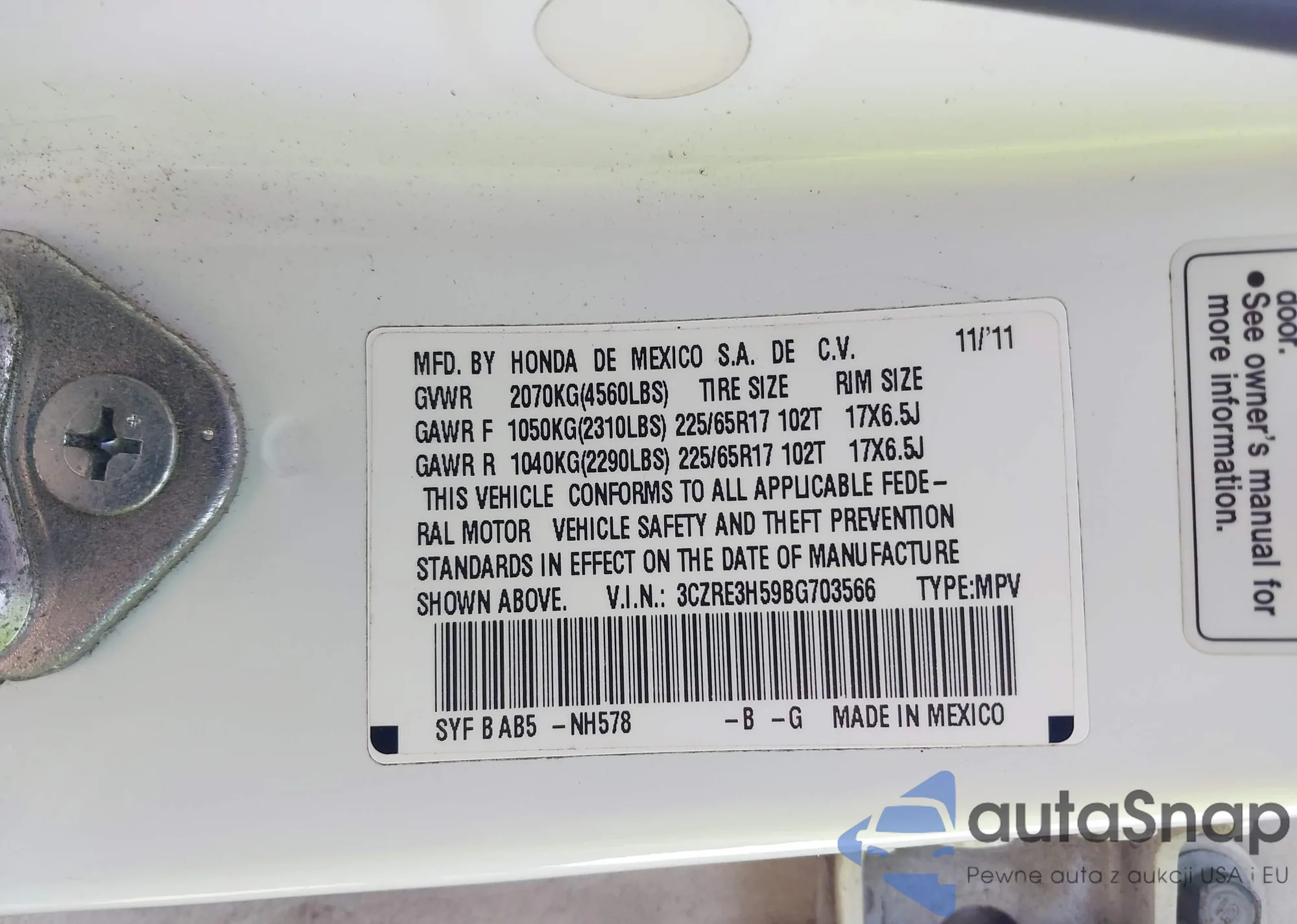VIN: 3CZRE3H59BG703566