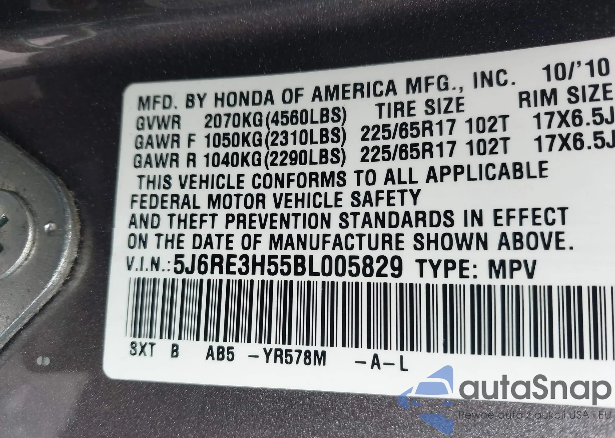 VIN: 5J6RE3H55BL005829