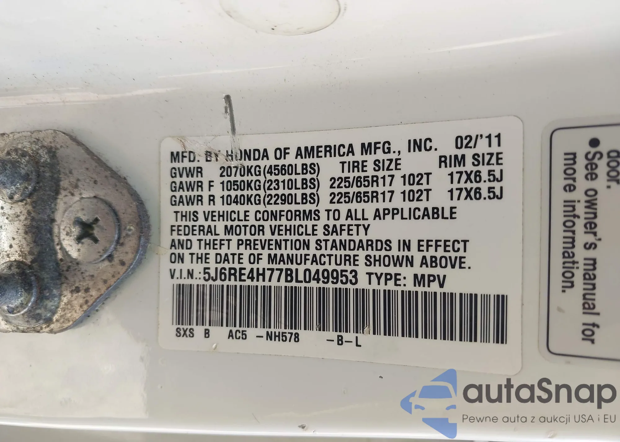 VIN: 5J6RE4H77BL049953