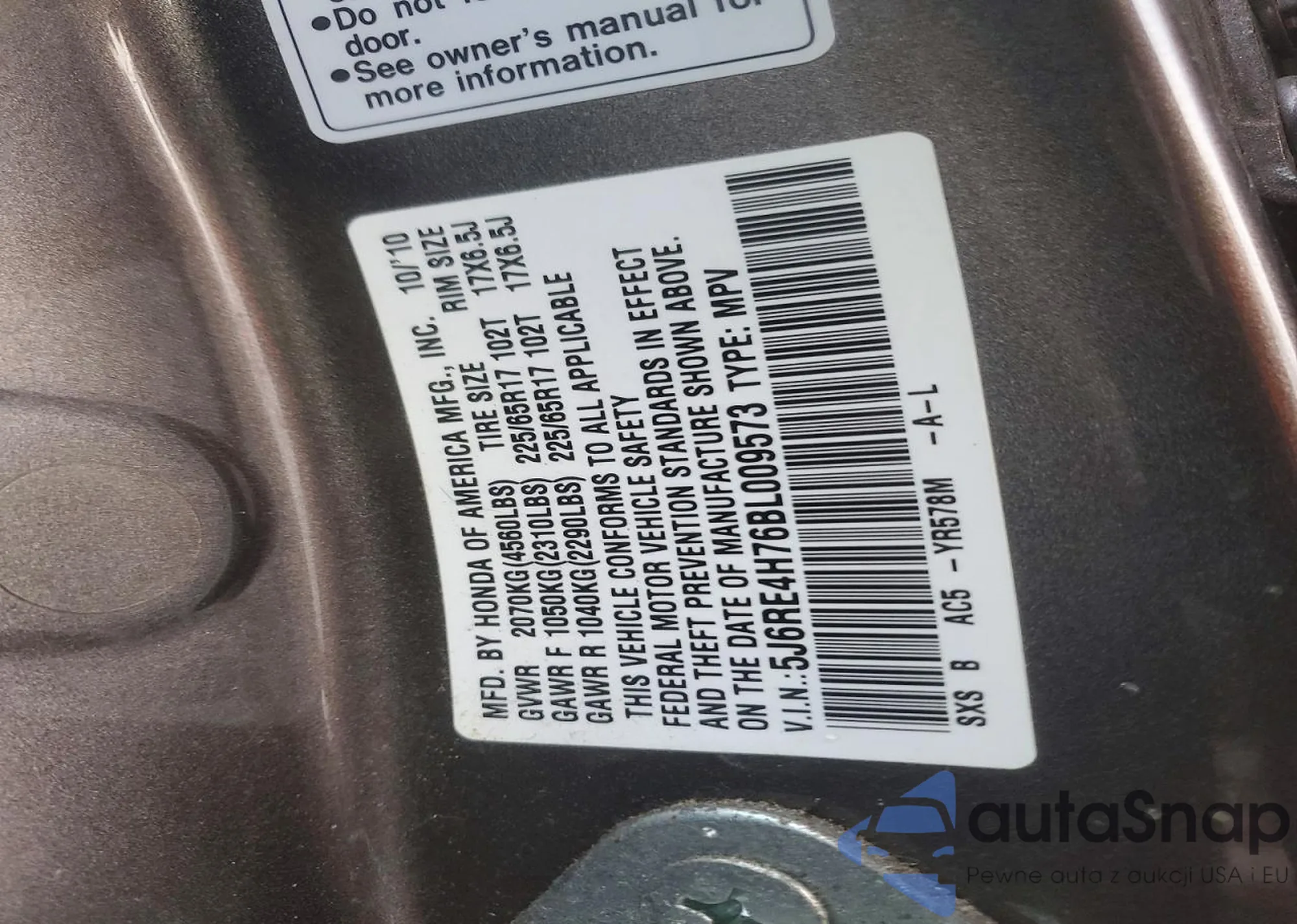 VIN: 5J6RE4H76BL009573