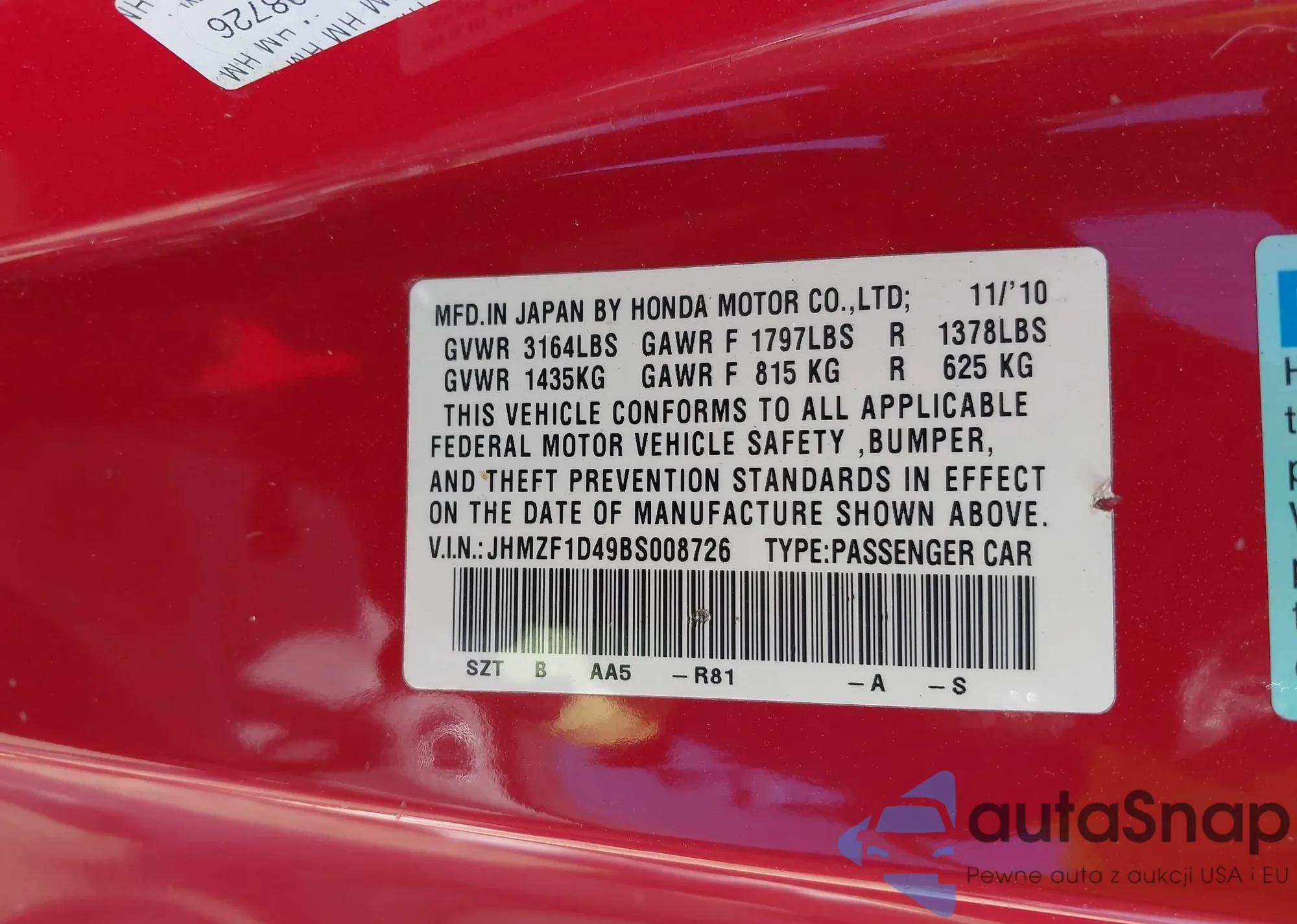 VIN: JHMZF1D49BS008726