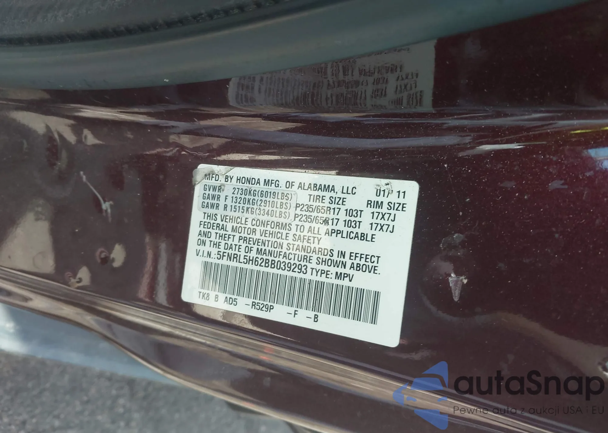 VIN: 5FNRL5H62BB039293
