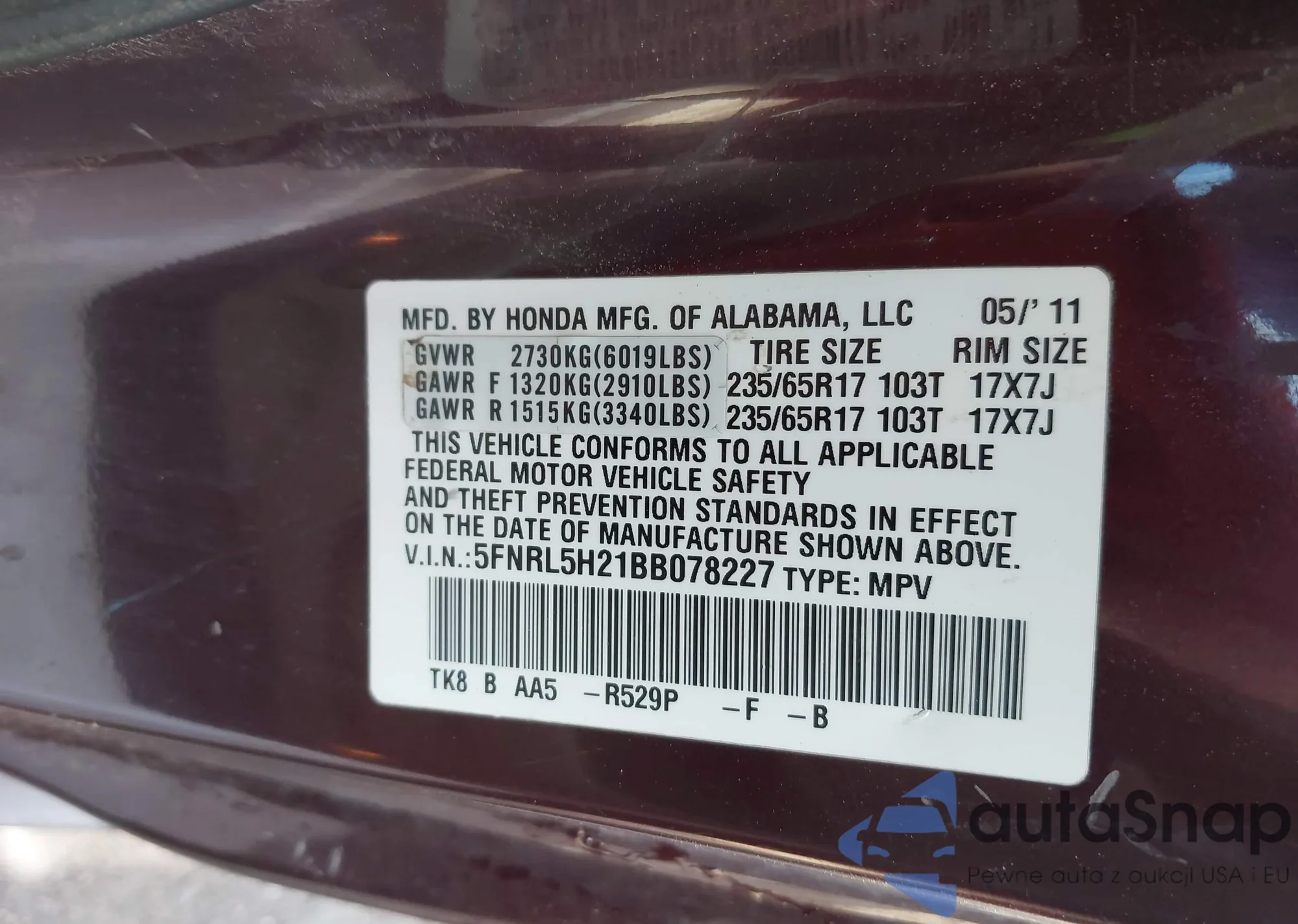Автомобиль Honda Odyssey 2011 (VIN 5FNRL5H21BB078227) ранее не участвовал в торгах. Документы чистые, пробег соответствует или ниже среднего по рынку. Продаётся страховой компанией — рекомендуем покупку. Доставка в порт займет около 6–8 недель.