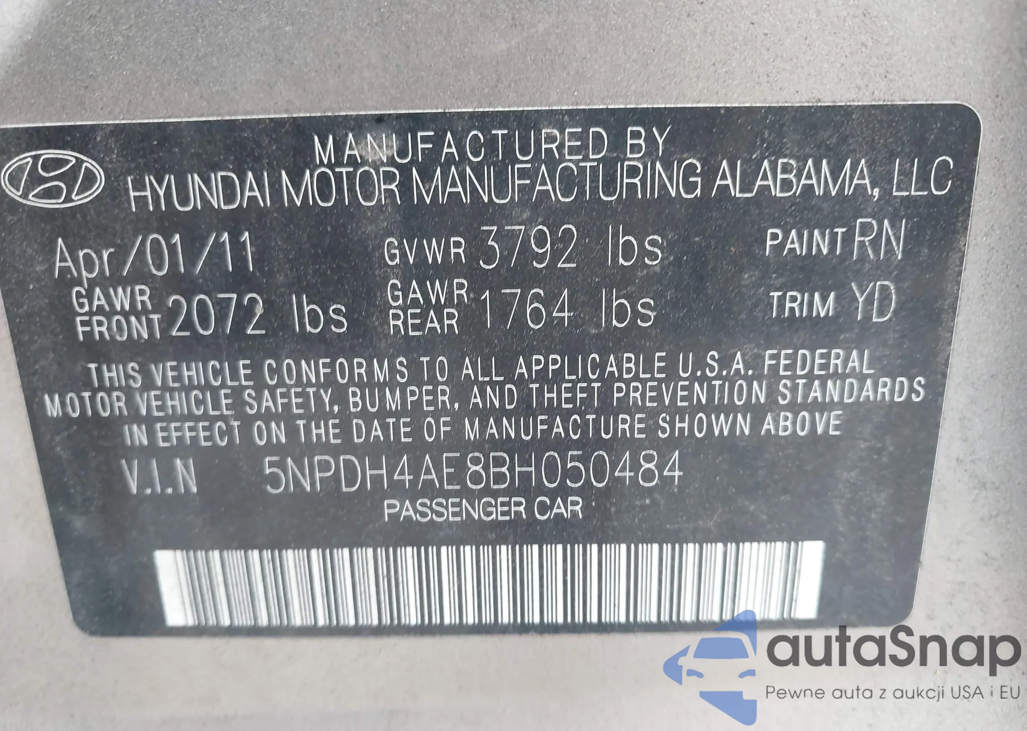VIN: 5NPDH4AE8BH050484