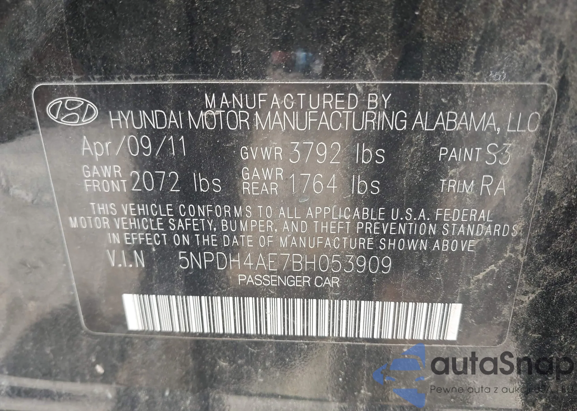 VIN: 5NPDH4AE7BH053909