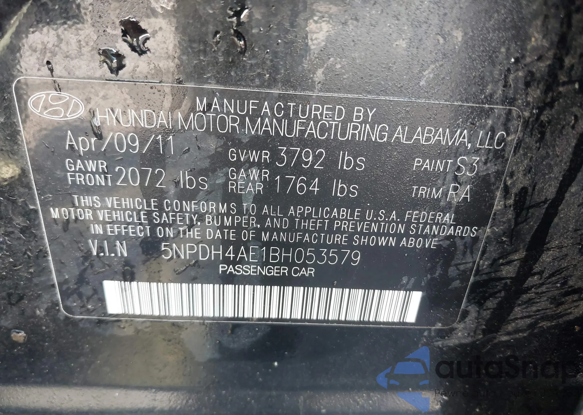 VIN: 5NPDH4AE1BH053579