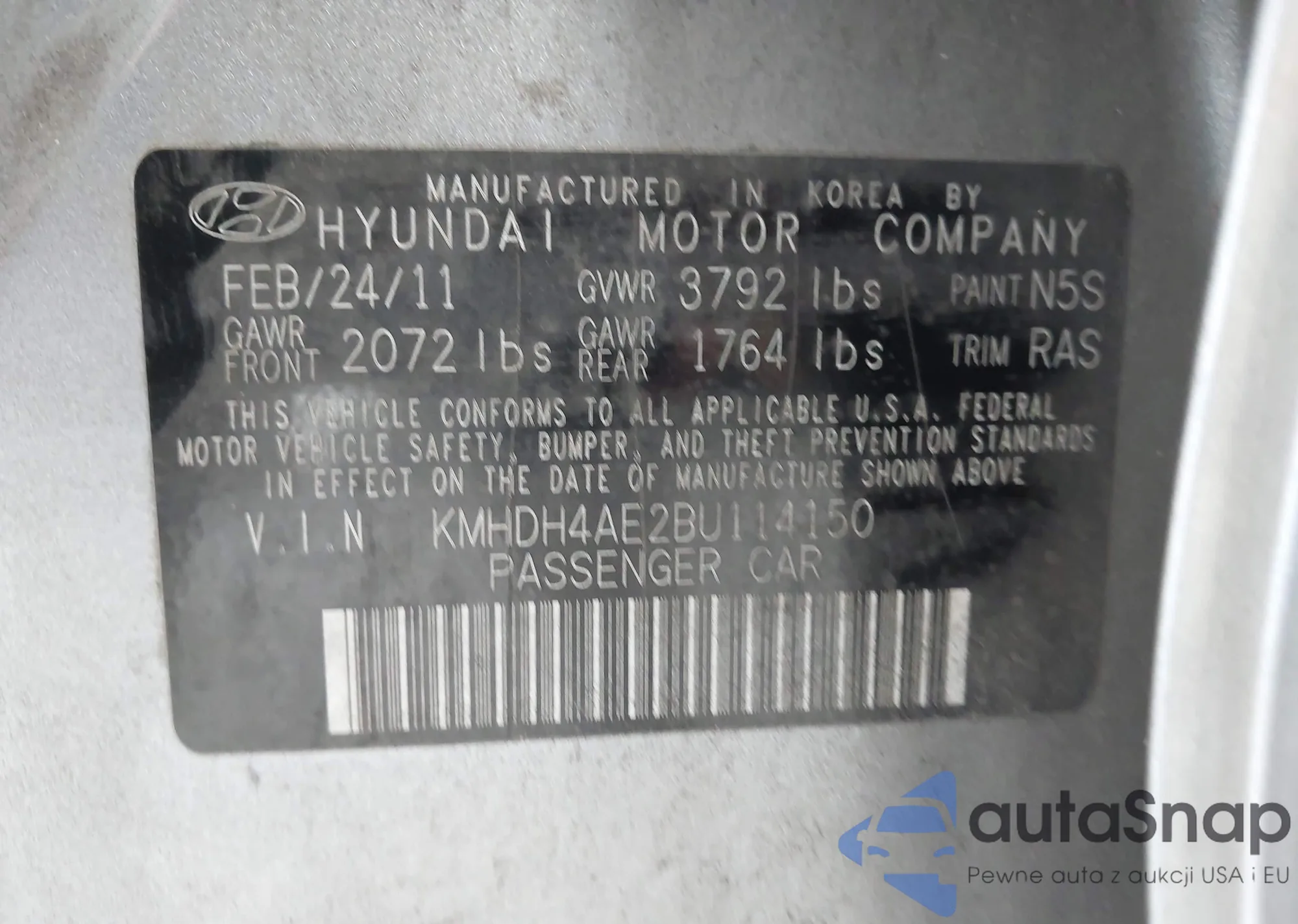VIN: KMHDH4AE2BU114150