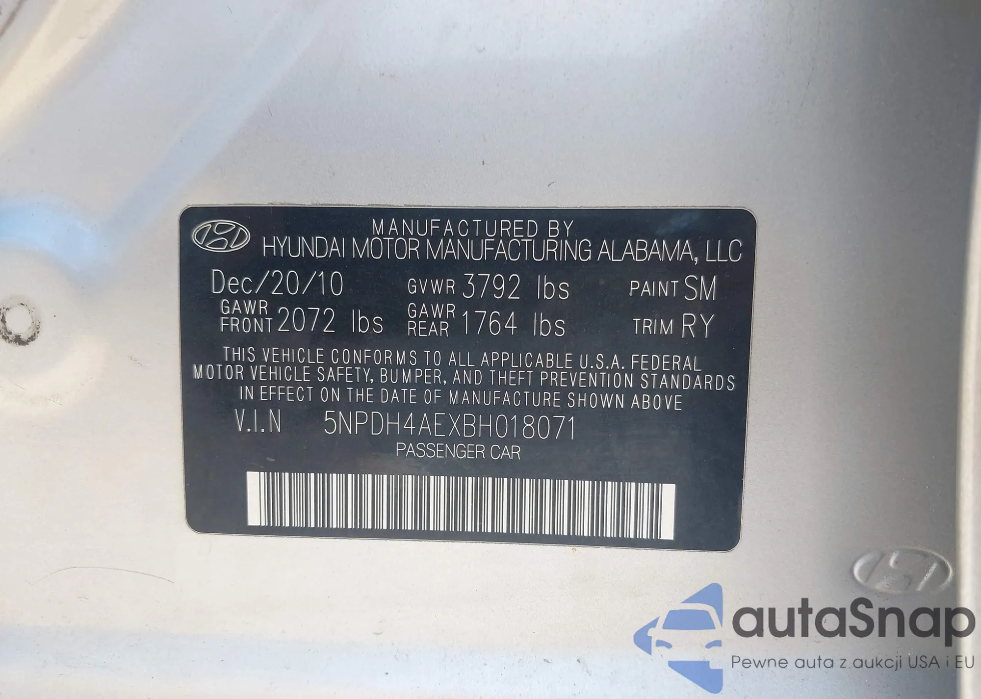 VIN: 5NPDH4AEXBH018071